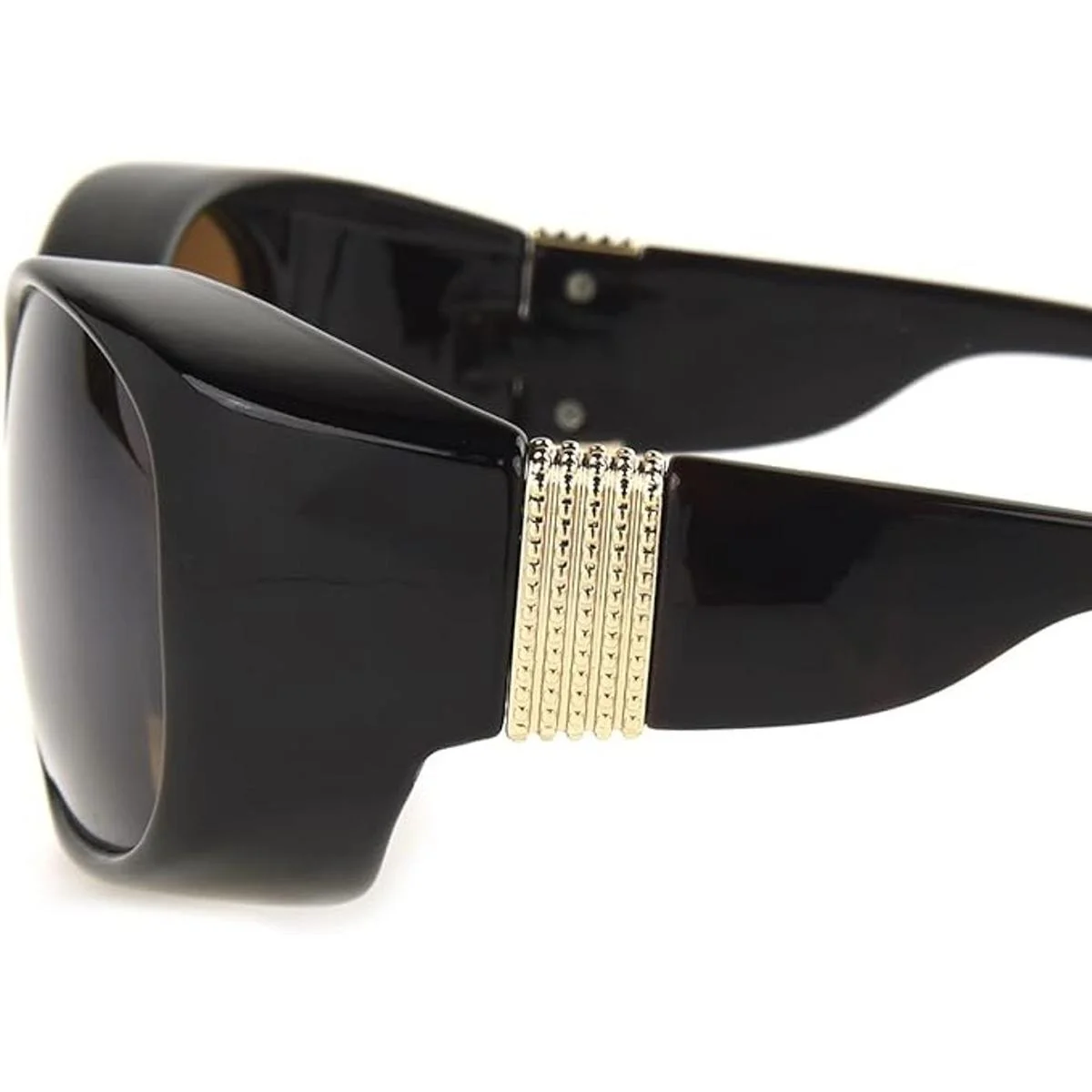 Gafas de sol polarizadas con escudo solar para gafas de sol AZT FO029, marco negro brillante, lentes ahumadas grandes
