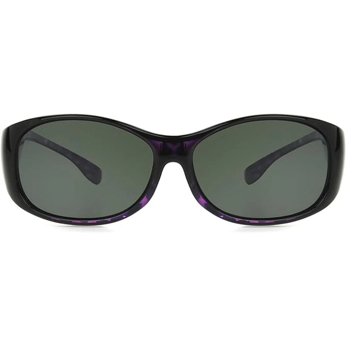 Dióptica/Solar ShieldSunset AZT se adapta a gafas de sol, FO029 polarizadas Oval brillante marco negro, lentes ahumadas grandes. Tamaño: longitud del brazo: 5.118 in; puente: 0.472 in; marco: ovalado, color negro brillante. Lente: ancho: 2.362 in, altura: 1.772 in, color: gris, polarizado.