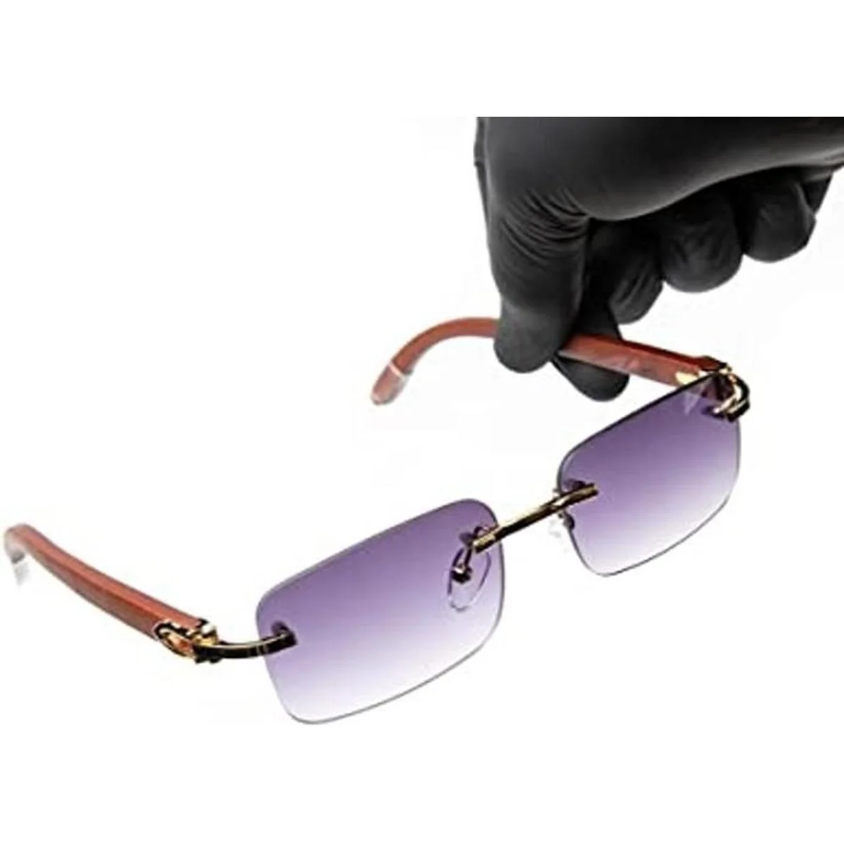 Gafas de sol retro vintage Woodgrain dorado Frame Purple Tint Hip Hop Material de las lentes: acrílico Material del marco: metal y madera hecha a mano Ancho de la lente: 2.087 in