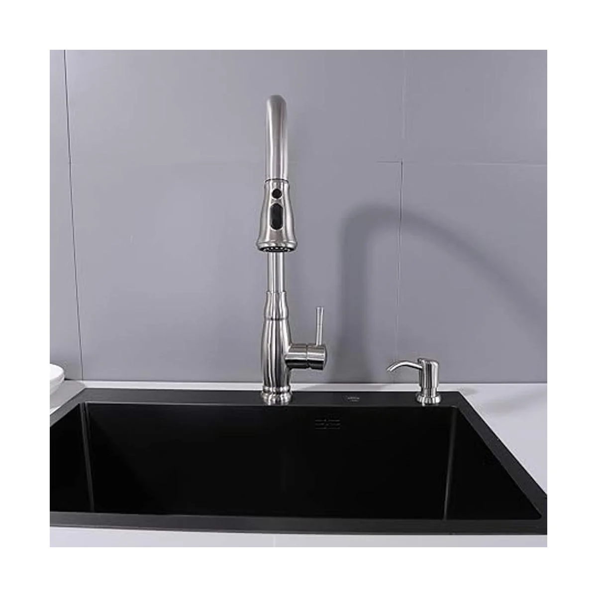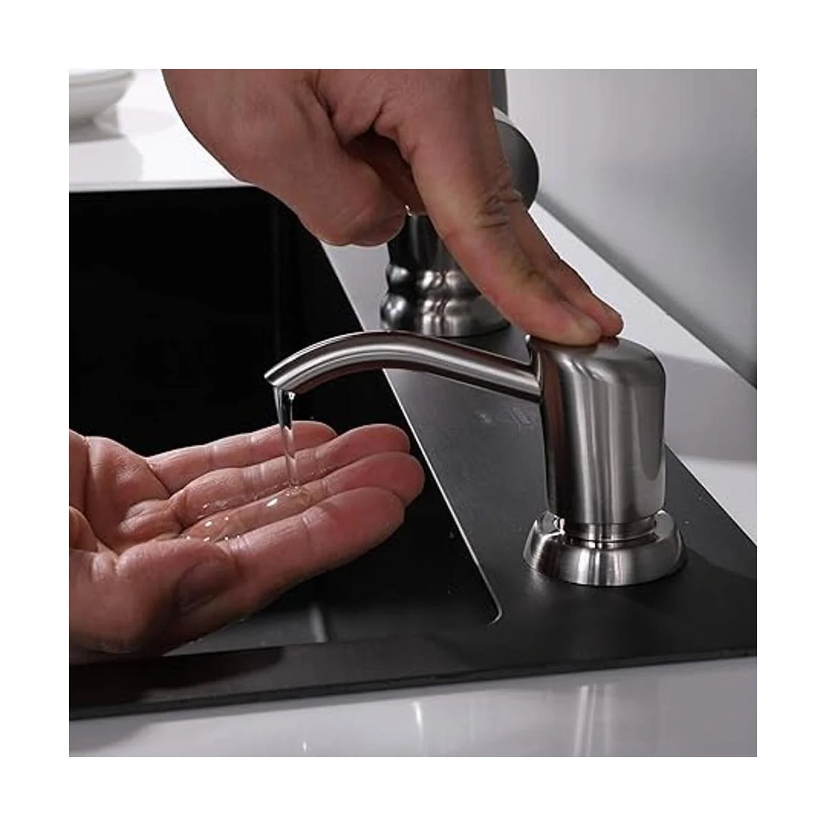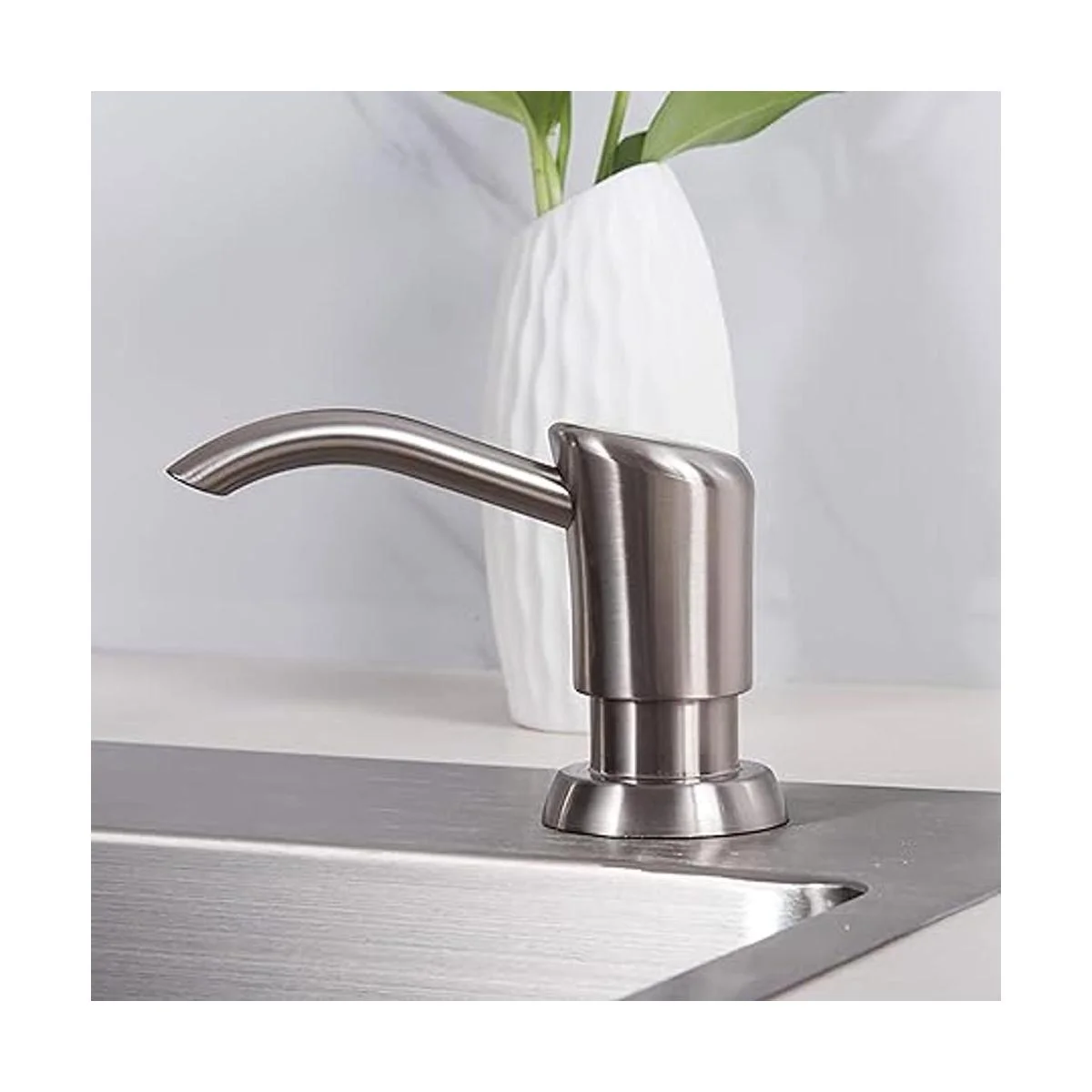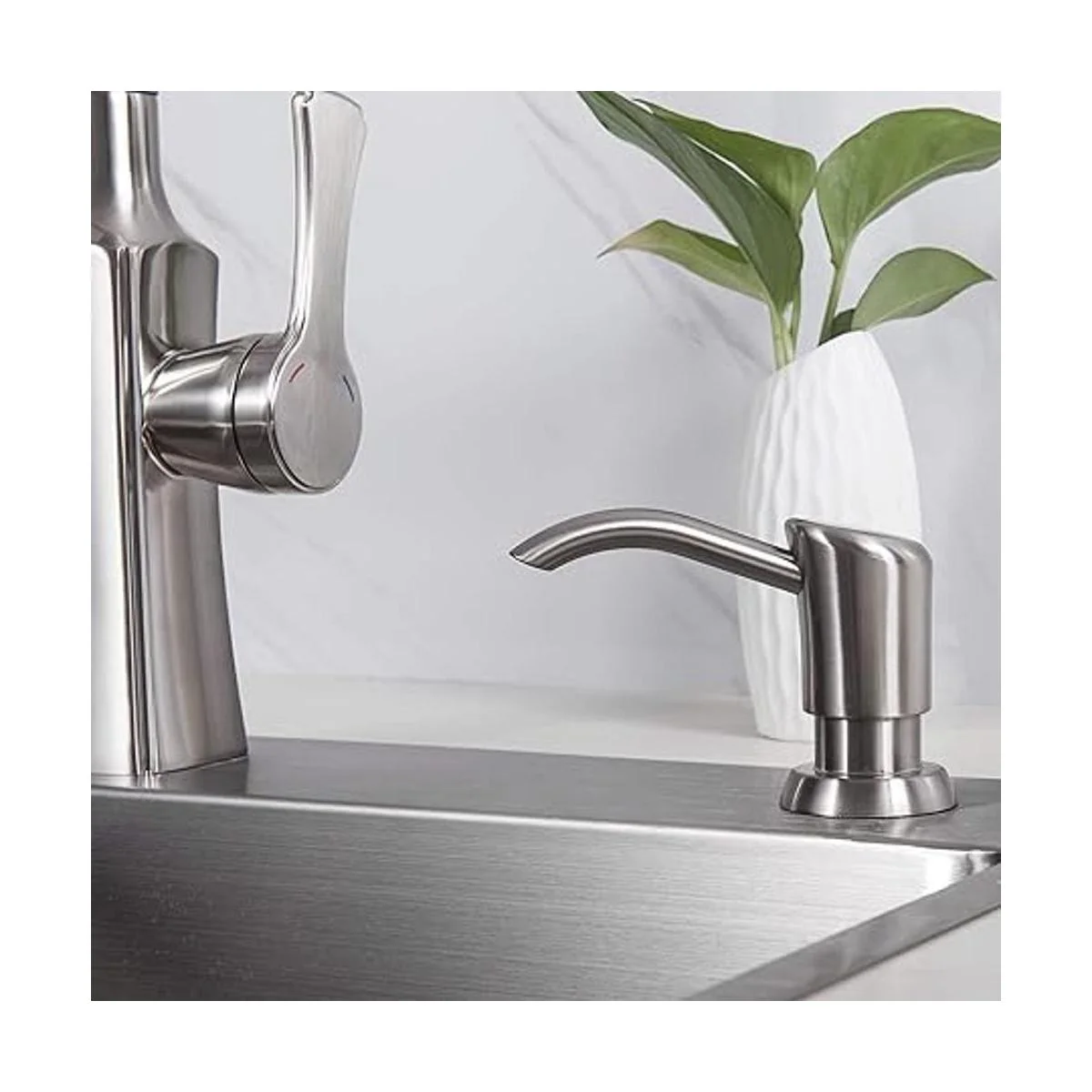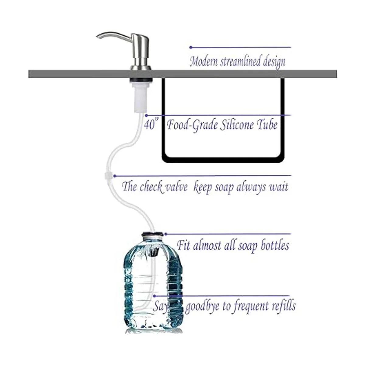 Alta calidad y diseño moderno Cabezal dispensador de jabón de níquel cepillado, por lo que no es fácil de desgastar, el tubo de silicona de grado alimenticio de 40 pulgadas es suave y elástico, lo que hace que el jabón fluya suavemente. Todos ellos hacen que tu cocina sea fácil y elegante