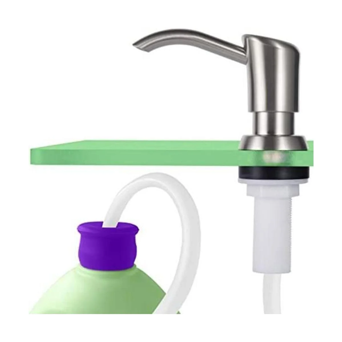 No más recambios desordenados No más gateos debajo del fregadero. Nuestro elegante dispensador de jabón viene con un tubo que entra directamente en una botella de jabón grande para platos, puedes omitir el proceso de recarga frecuente.