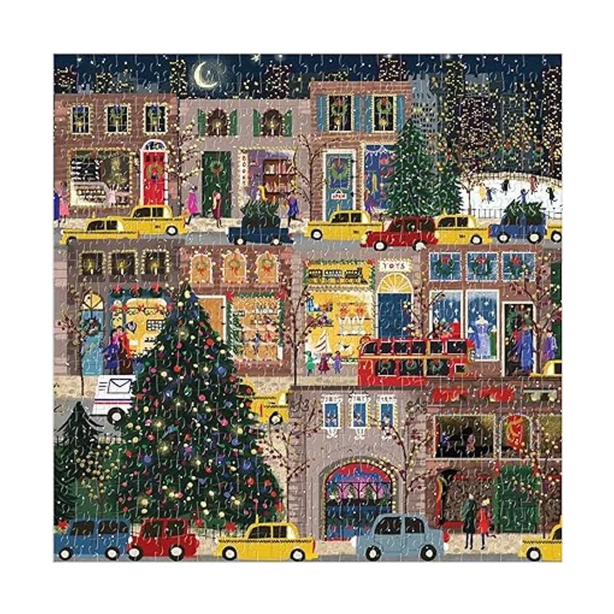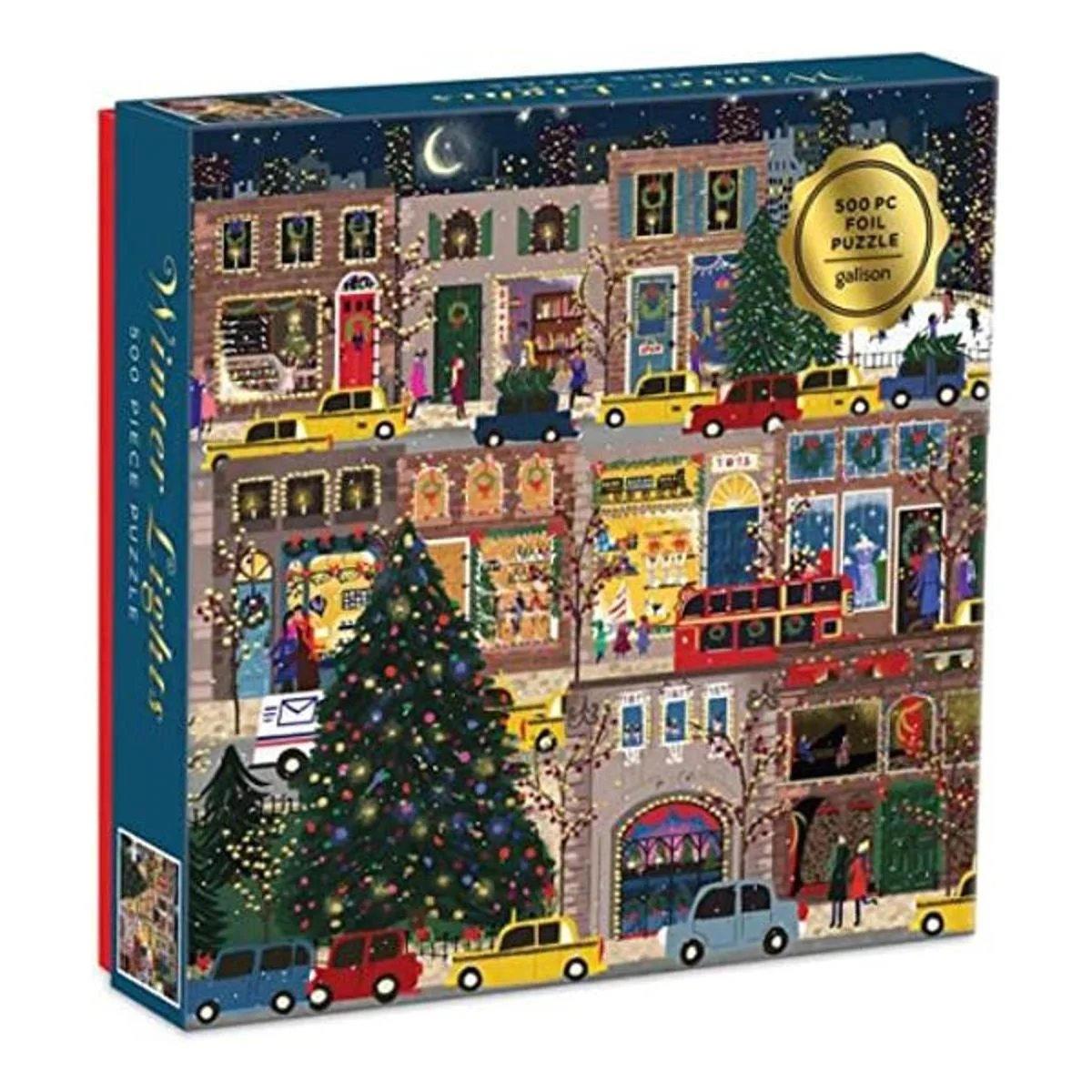Galison Joy Laforme Rompecabezas de luces de invierno, 500 piezas, 20 x 20 pulgadas, rompecabezas de vacaciones con una escena festiva de la ciudad, piezas gruesas y resistentes, actividades familiares desafiantes, gran idea de regalo