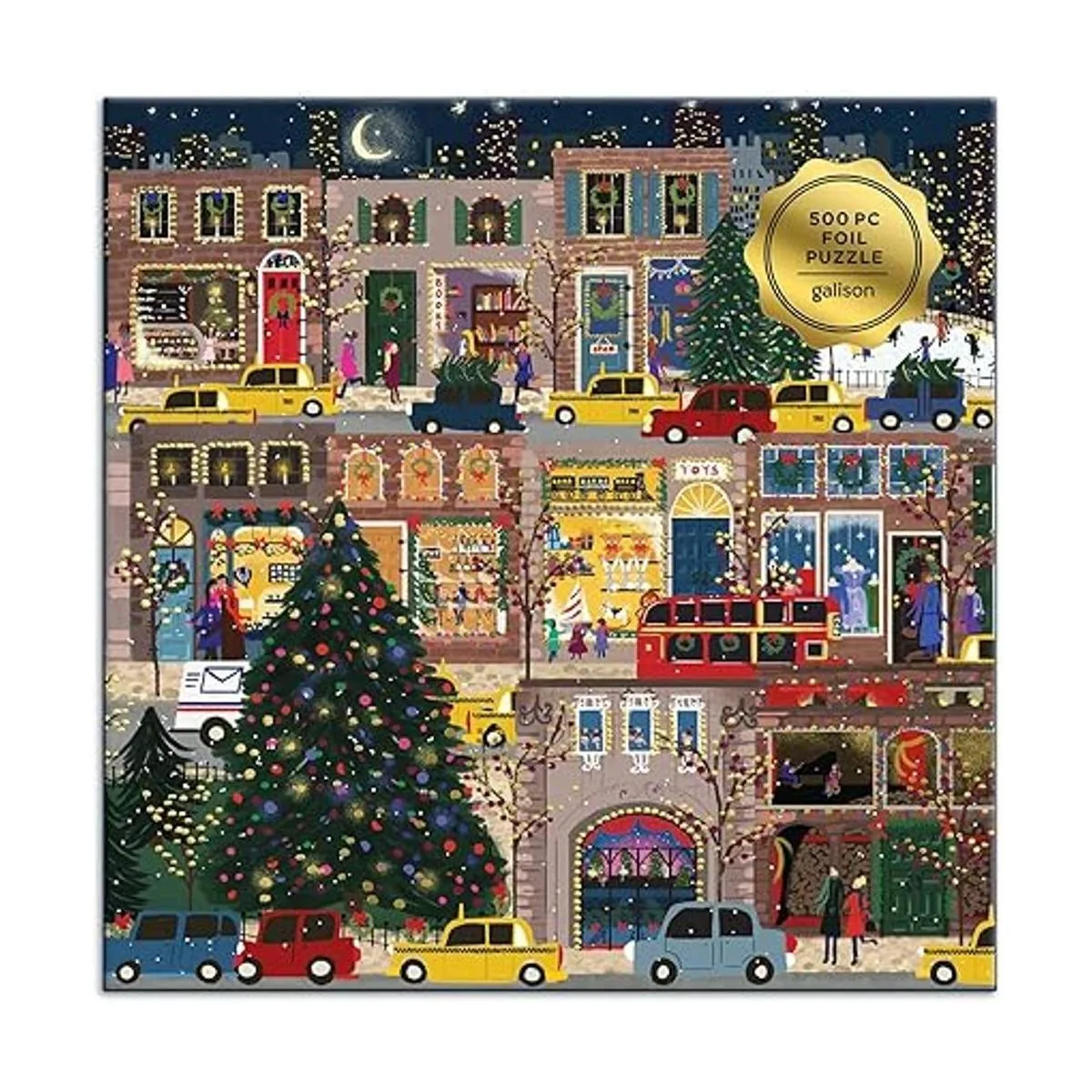 Detalles impresionantes: con obras de arte de Joy Laforme, este rompecabezas para adultos muestra una divertida imagen nocturna de una ciudad vibrante, todo iluminado y decorado para la temporada de vacaciones. Además, los detalles de lámina dorada brillante añaden un elemento extra de atractivo.