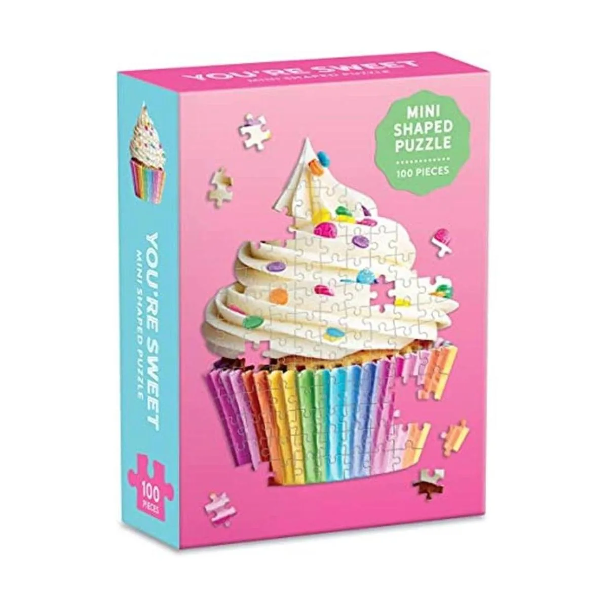 Galison Mini rompecabezas en forma de cupcake, 100 piezas con diseño colorido, piezas gruesas y resistentes, ideal para diversión en familia.