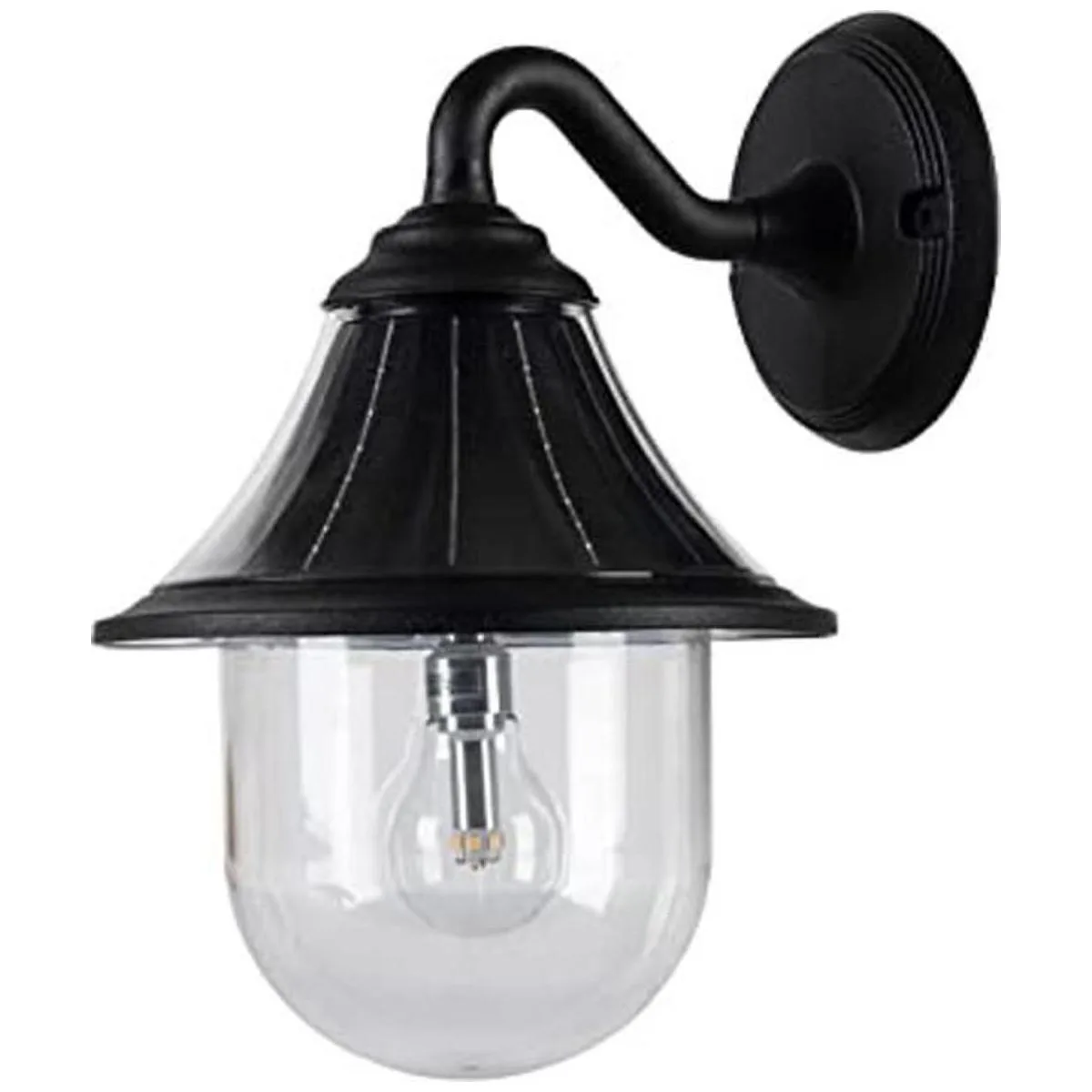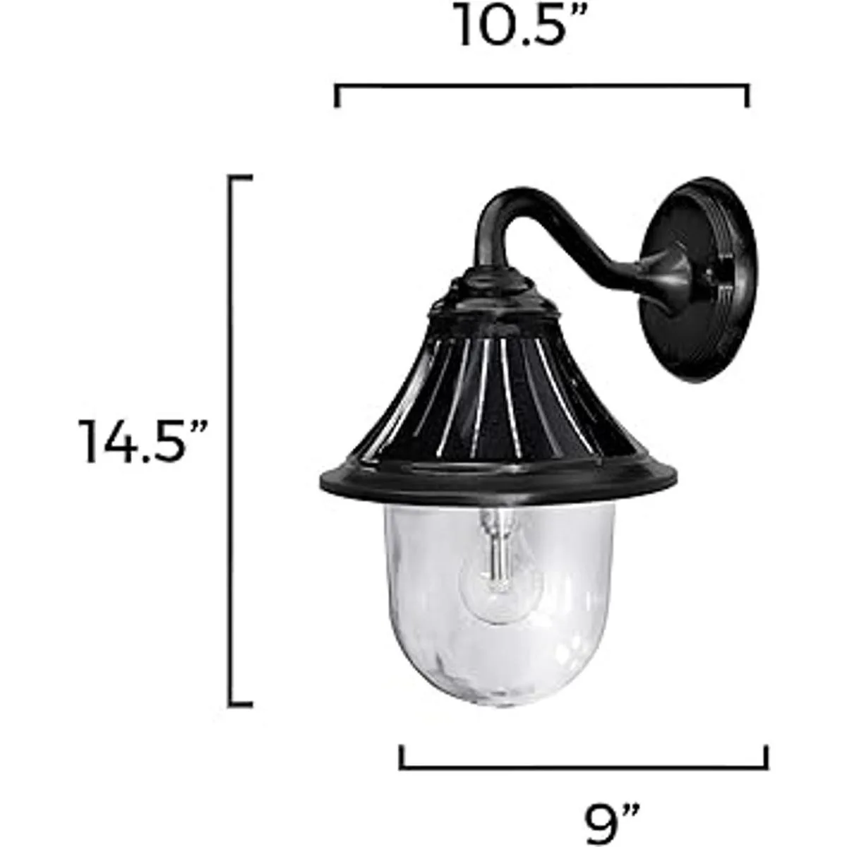 Gama Sonic Orion Lámpara solar de pared para exteriores, 150 lúmenes, luz LED blanca cálida de 2700 K, aplique de resina negra duradera, estilo industrial, del atardecer al amanecer 123010
