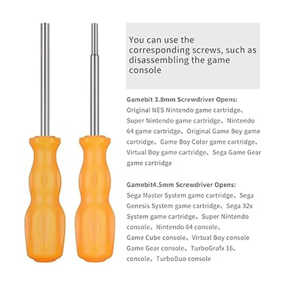 Gamebit Juego de destornilladores de seguridad de 0.150 in y 0.177 in, herramientas de destornillador para abrir cartuchos y sistemas NES SNES N64 Super Nintendo 64, color naranja