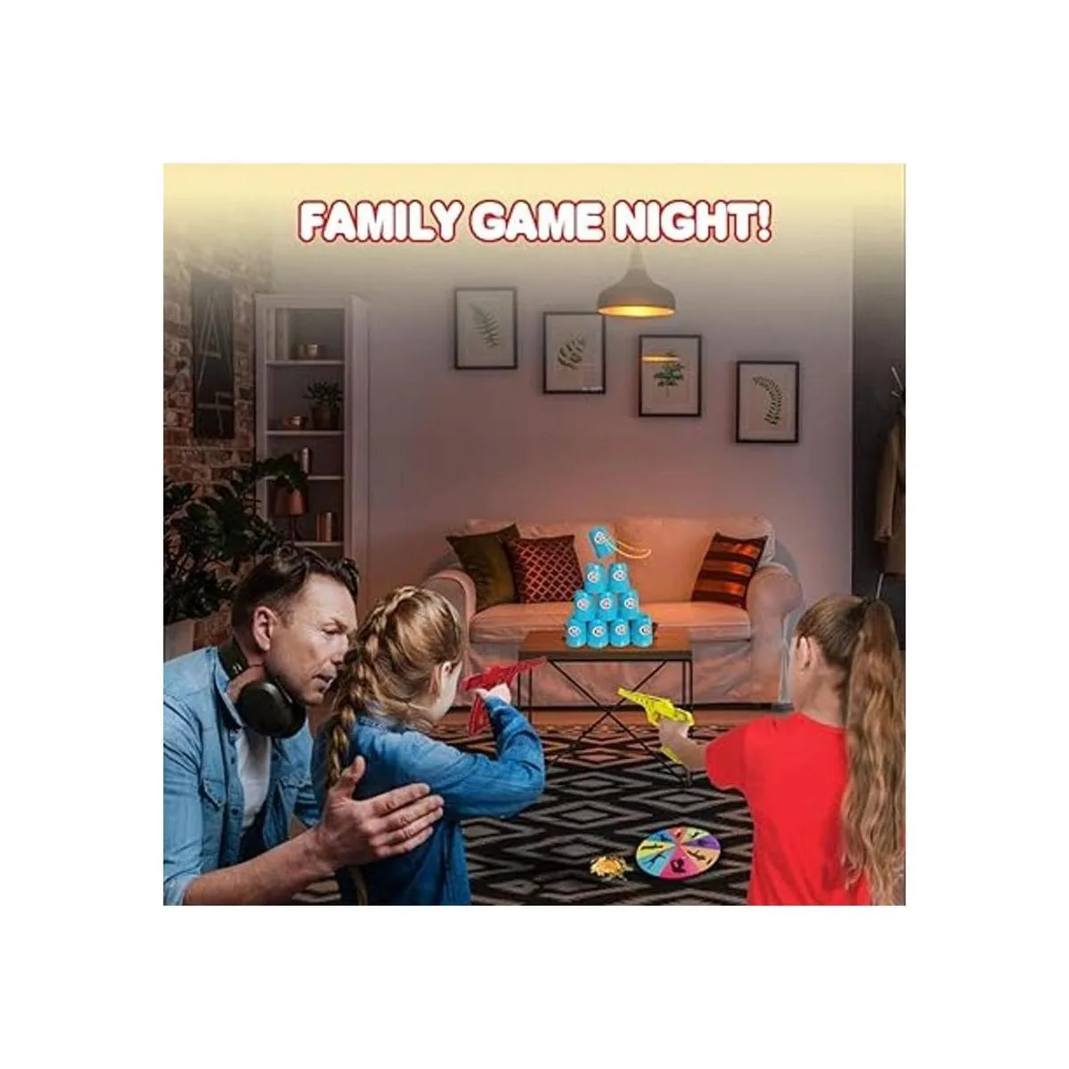 Divertida práctica de objetivo: un juego de disparos para niños con un giro súper divertido. Este juego de práctica de objetivo viene con 3 lanzadores de goma de de juguete, 100 bandas de goma, un tocadiscos de juego, 10 tazas y calcomanías de puntuación para las tazas. Perfecto para 13 jugadores, es una receta para diversión llena de alegría.