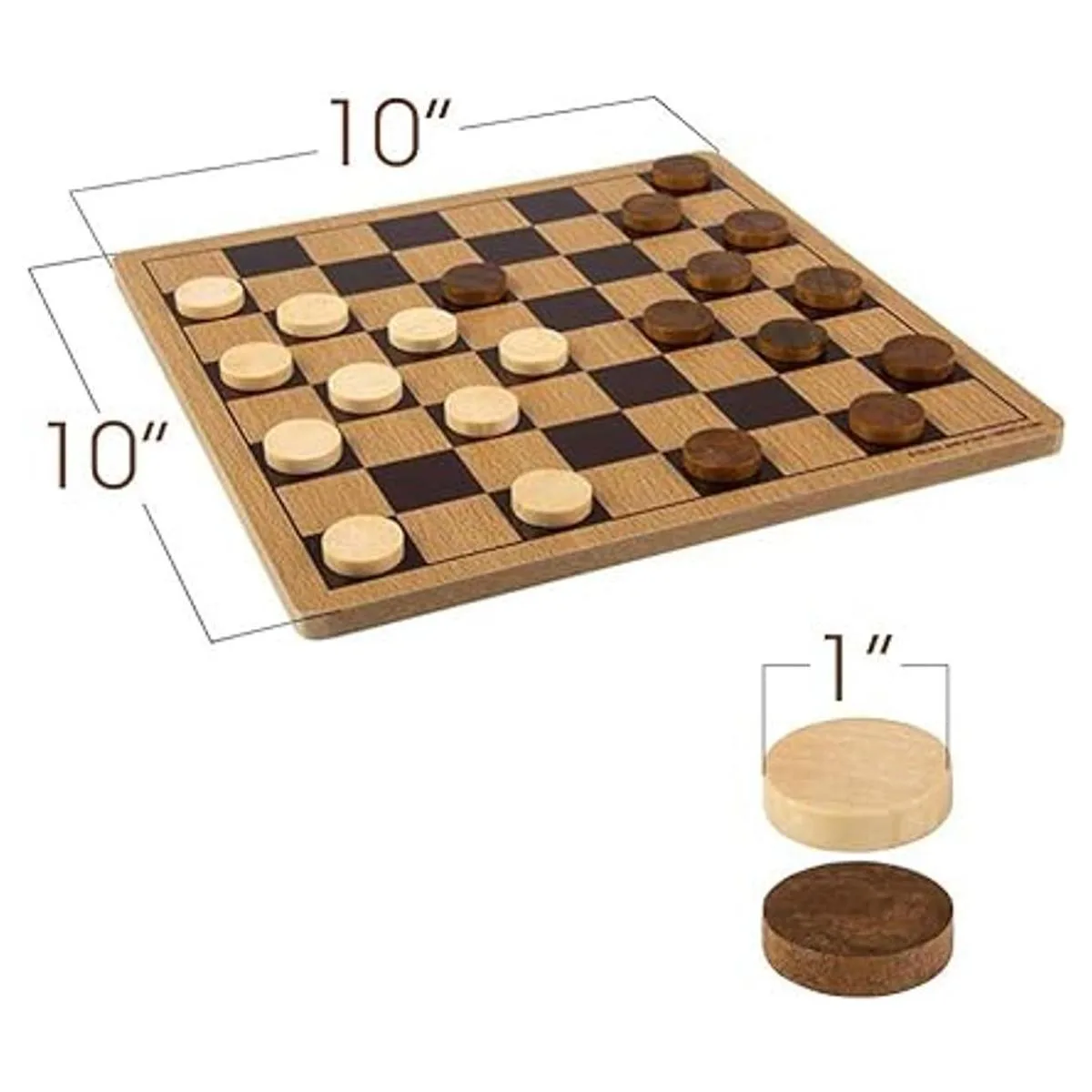 Juego de estrategia clásico: un juego de pensamiento lógico y estrategia divertida a los niños y adultos les encantará Este juego de damas de madera viene con 1 tabla de 10 x 10 pulgadas, 24 piezas 12 de cada color e instrucciones idioma español no garantizado. Captura todas las piezas de tu oponente para ser coronado el campeón de las Damas