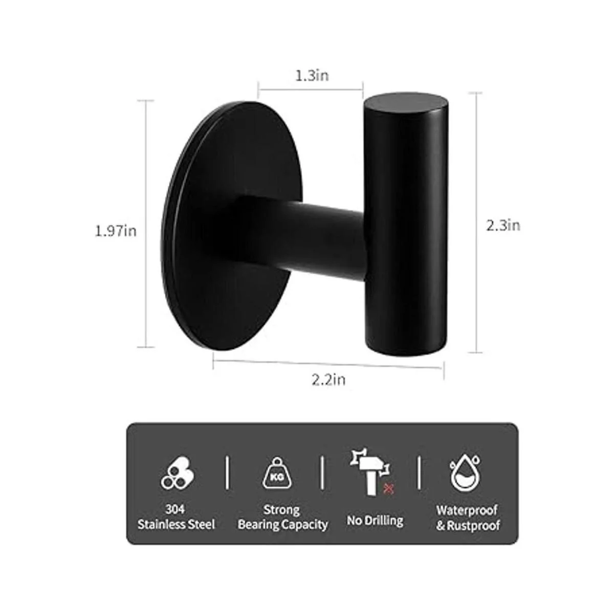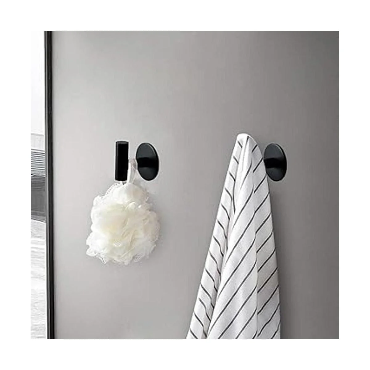 Tamaño de los ganchos adhesivos: el tamaño del gancho de pared es de 1.97 pulgadas de largo x 2.2 pulgadas de profundidad x 2.3 pulgadas de alto. El peso de un par de ganchos para toallas es de 4.23 oz. Estilo moderno minimalista, ganchos de acabado negro mate que crean un aspecto simple y elegante, adecuado para la mayoría de baños o decoración de hotel.