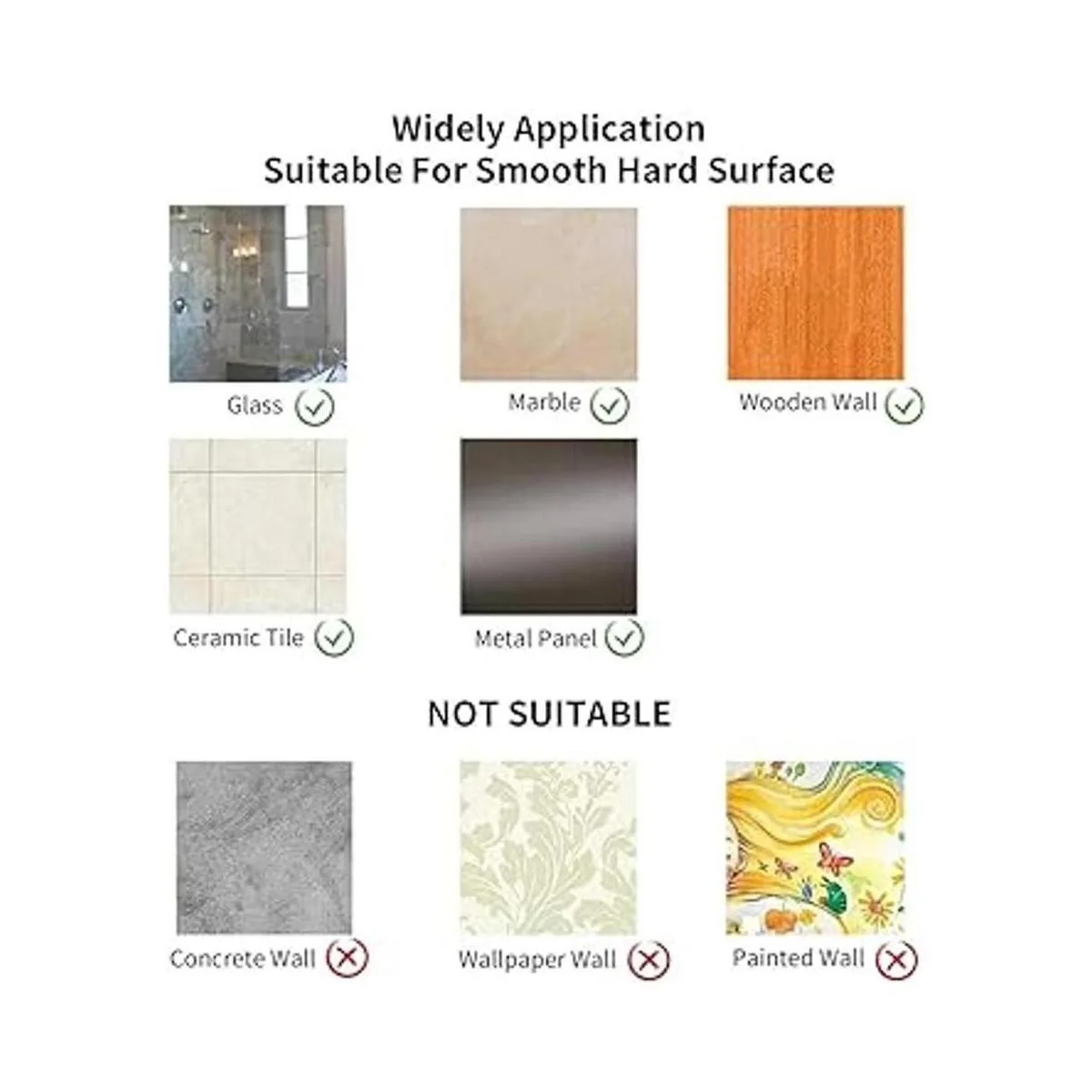 Amplia aplicación: puedes pegar los ganchos de toalla en superficies duras lisas, como azulejos, puertas de refrigerador, armarios, mármol, cerámica, espejos, acero inoxidable, acrílico, plásticos, etc. No se recomienda utilizar los ganchos en paredes de cal texturizadas, paredes de hormigón, paredes pintadas, paredes secas y papel pintado. Las superficies rugosas reducirán la adherencia o dañarán tu pared.