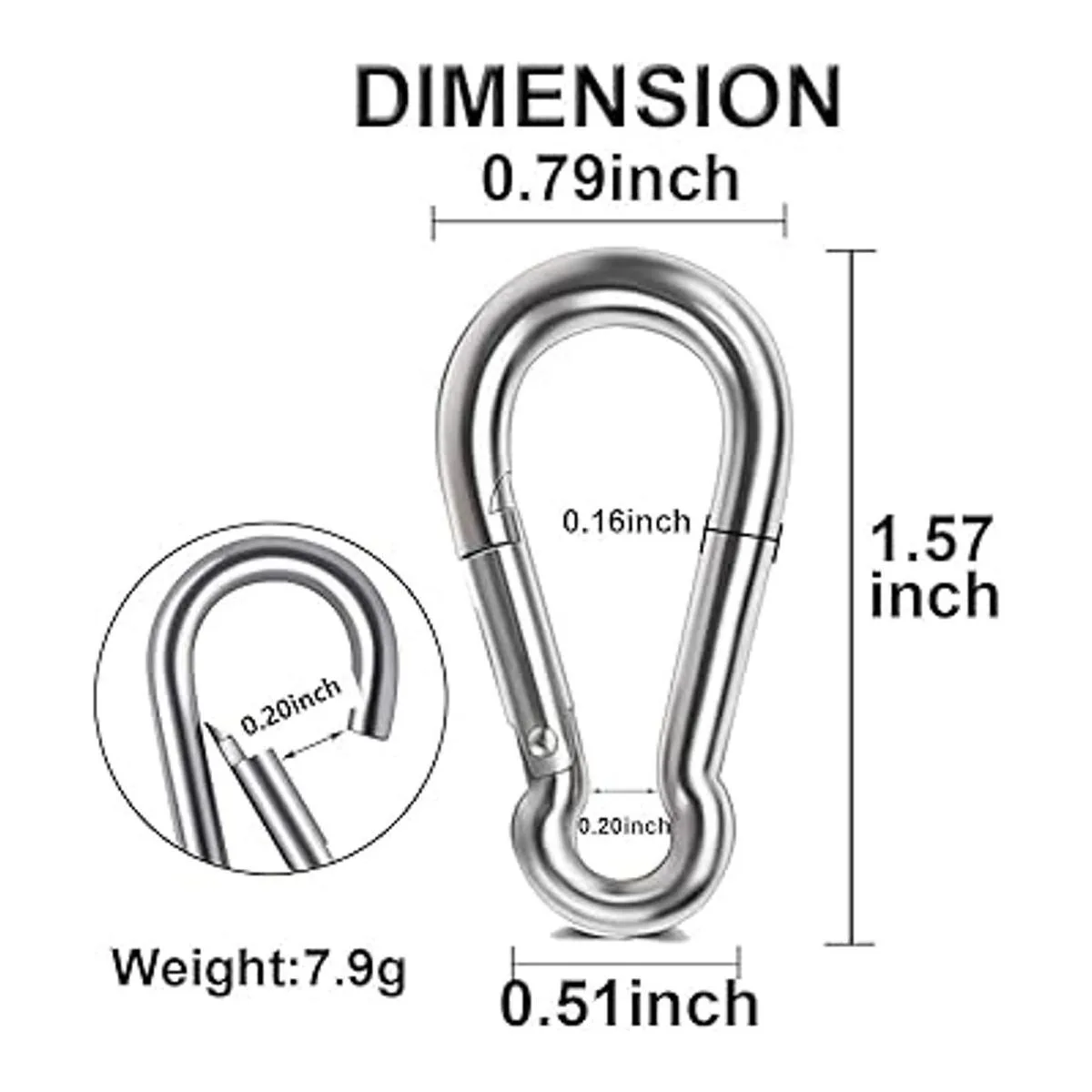 Gran rendimiento: nuestros mosquetones de acero inoxidable 304 no se oxidan tanto en interiores como en exteriores. Utilizando la última tecnología de fabricación, por lo que la superficie es suave y sin rebabas, no hay que preocuparse por dañar tu mano.