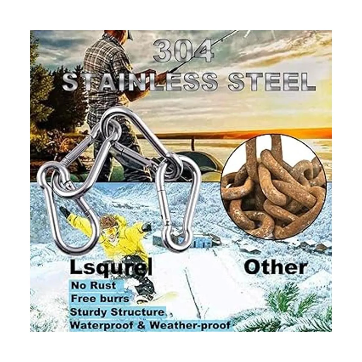 Gancho de resorte Lsquirrel 304 de acero inoxidable, mosquetón de acero inoxidable, llavero clip resistente, conexión rápida para campamento, senderismo, viajes, pesca