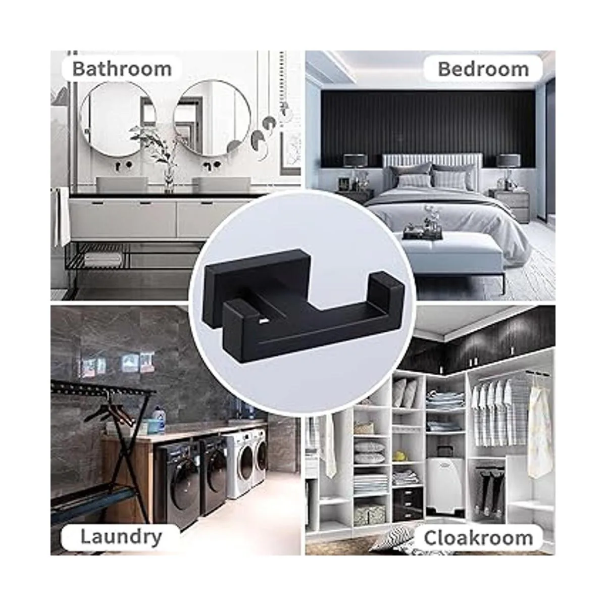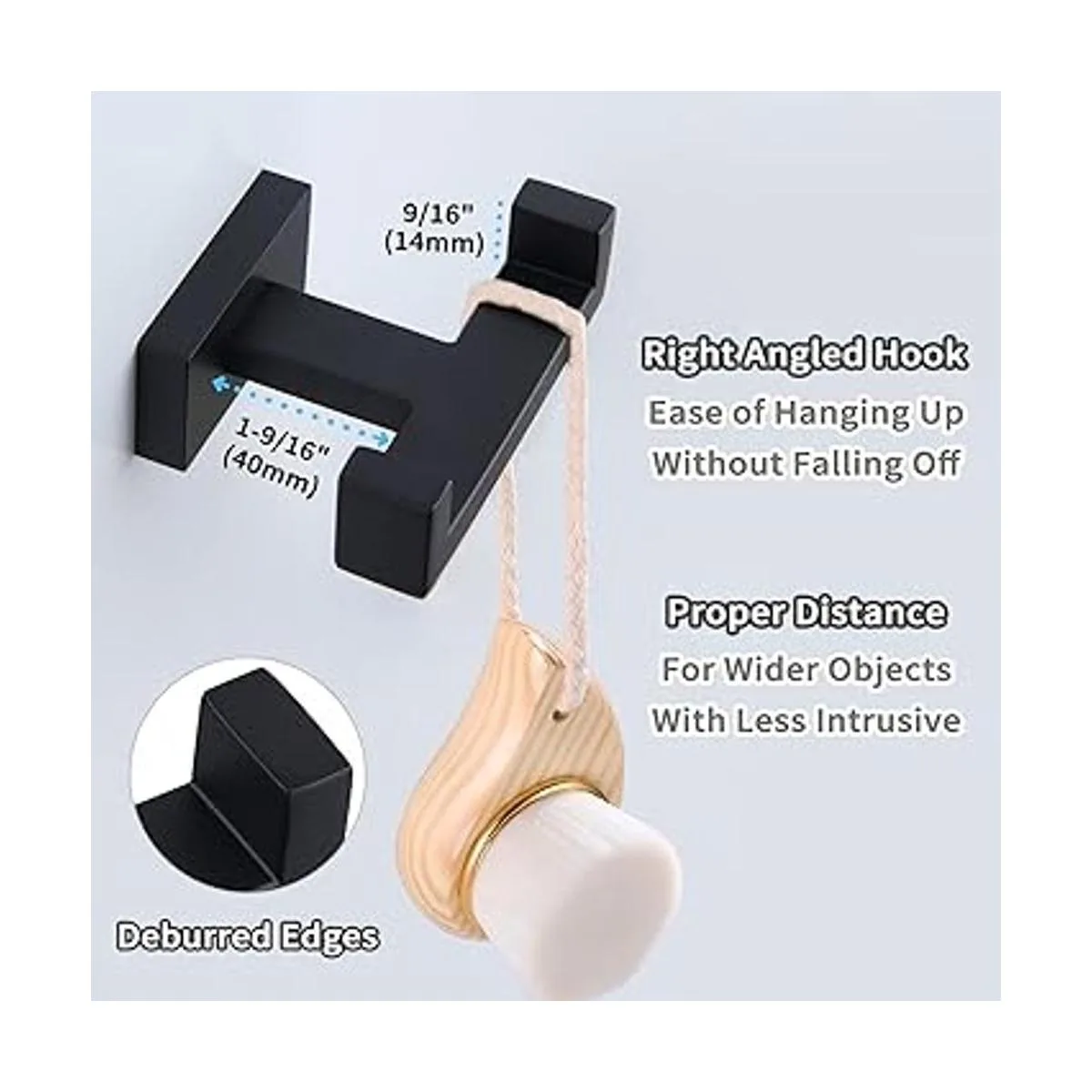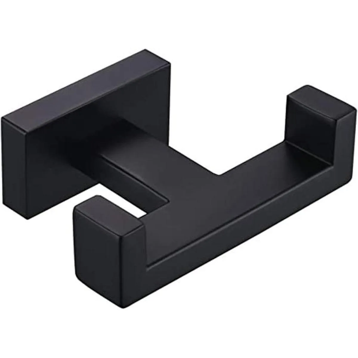 Gancho doble para toalla negro mate, ángulo simple de acero inoxidable, soporte para toalla de baño, gancho para bata de abrigo para montaje en pared