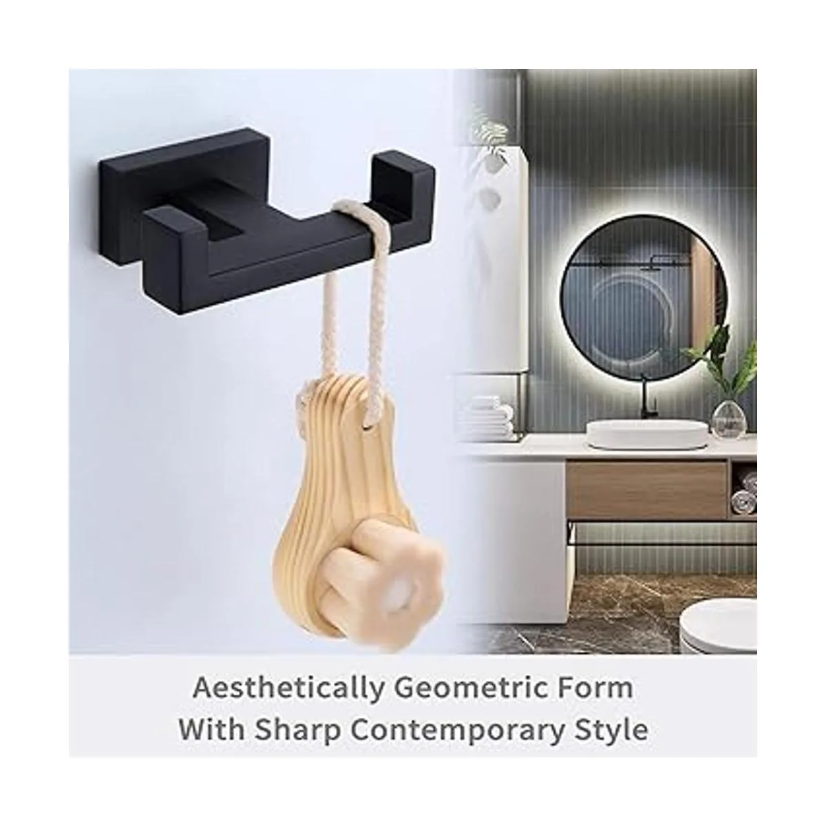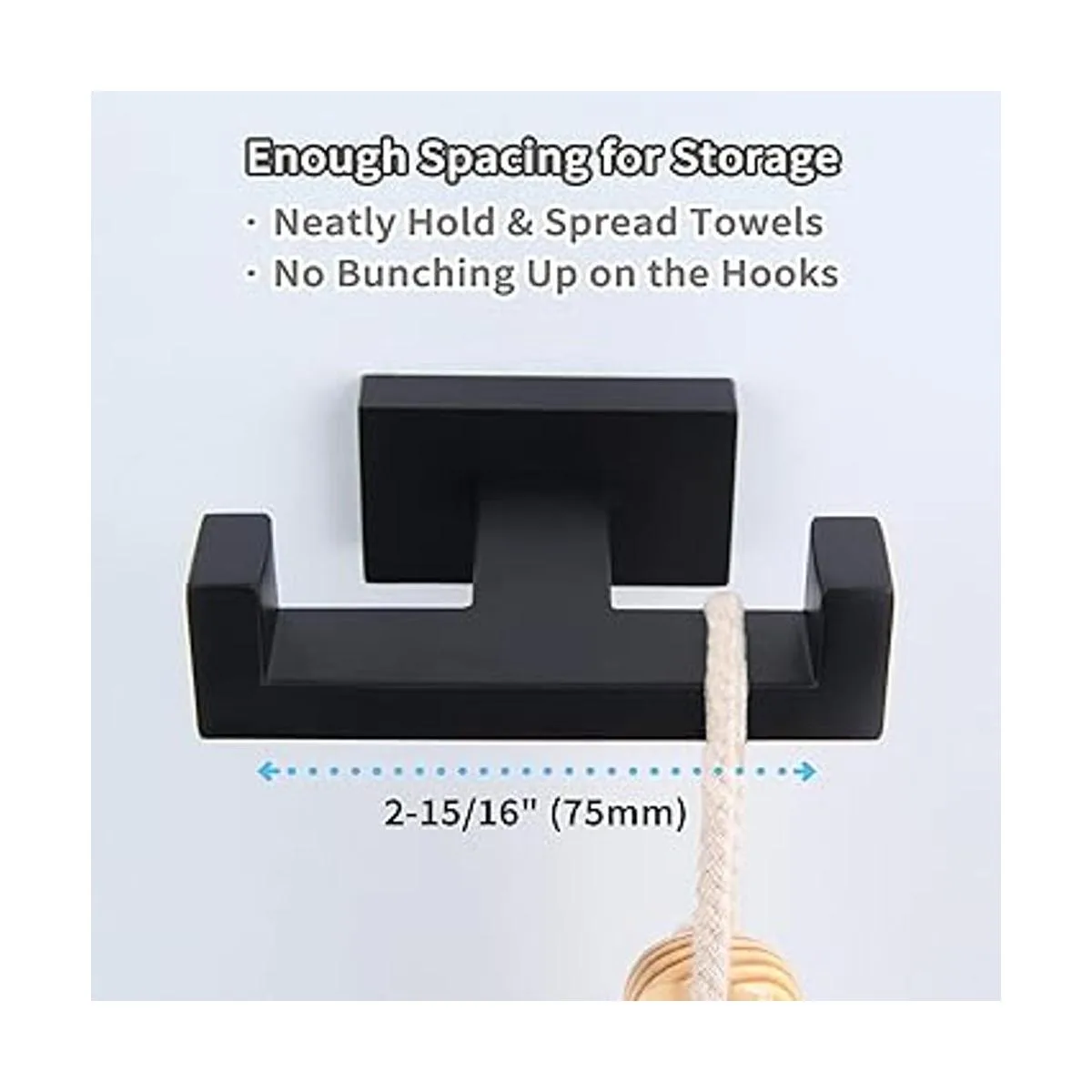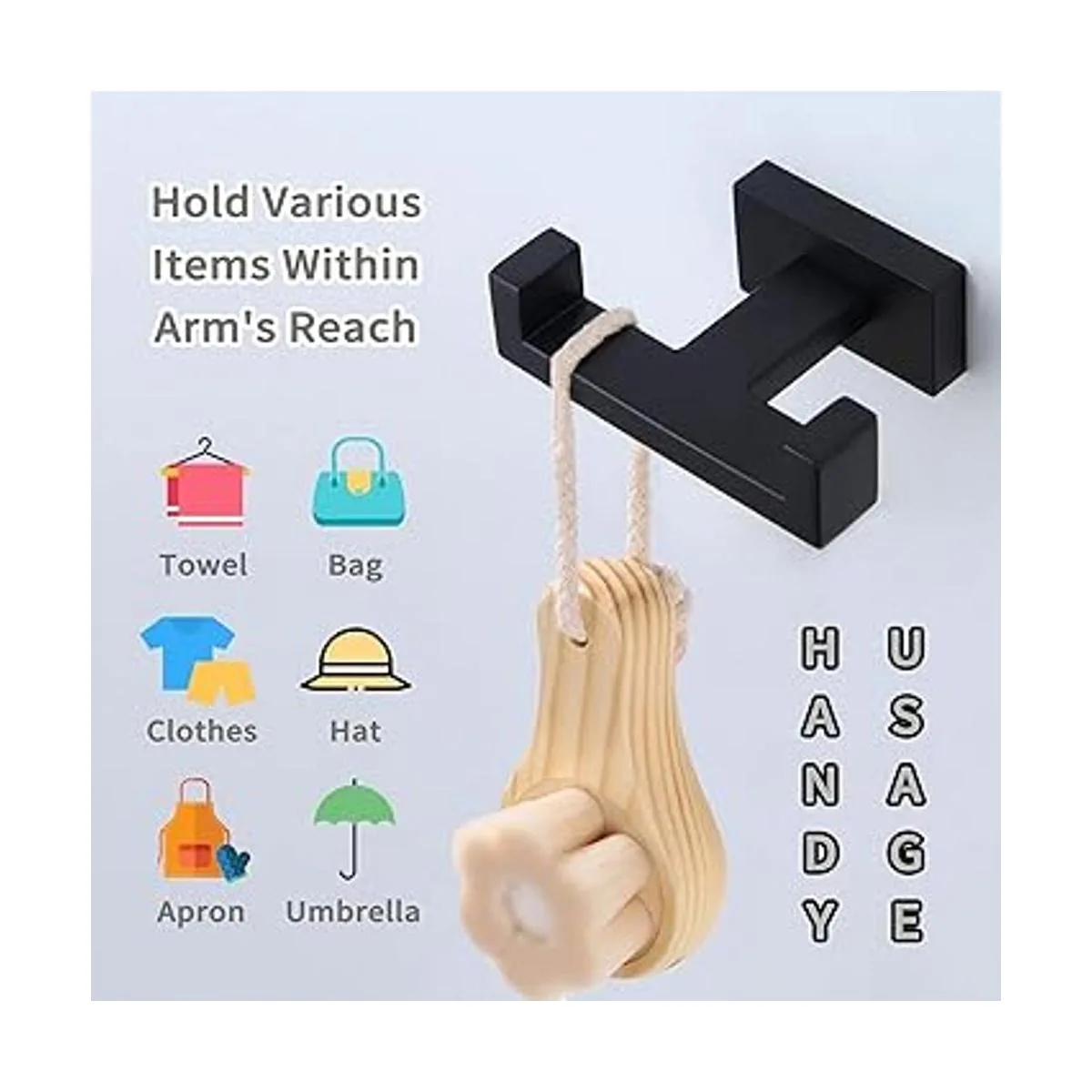 Gancho doble para toalla negro mate, ángulo simple de acero inoxidable, soporte para toalla de baño, gancho para bata de abrigo para montaje en pared