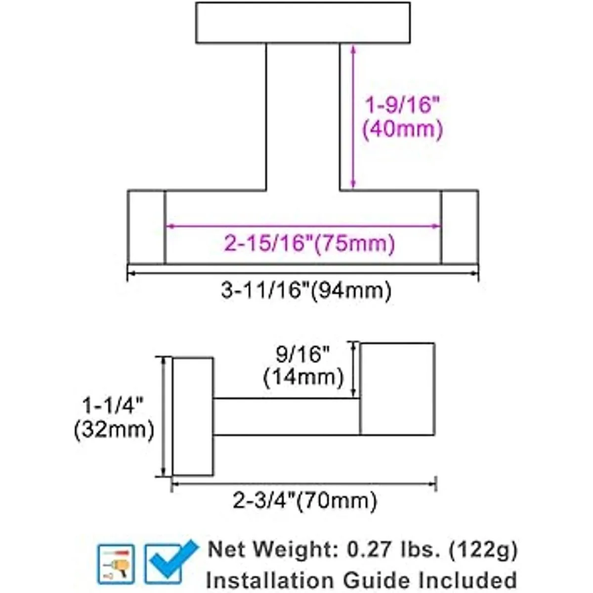 No se desliza y es fácil de montar: cuelga fácilmente toallas o ropa, este gancho doble para bata se fija de forma segura a la pared sin tambalearse, sosteniendo las cosas muy bien sin caerse en el suelo. Herramientas de montaje incluidas para una fácil instalación. Peso neto: 0.27 libras. 4.30 oz.