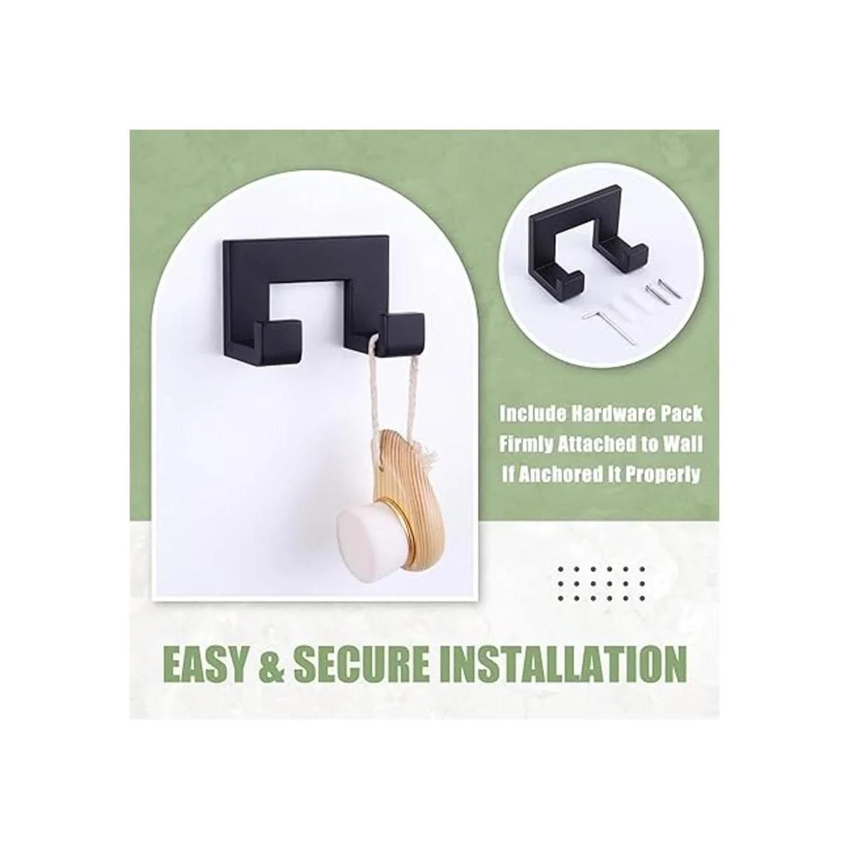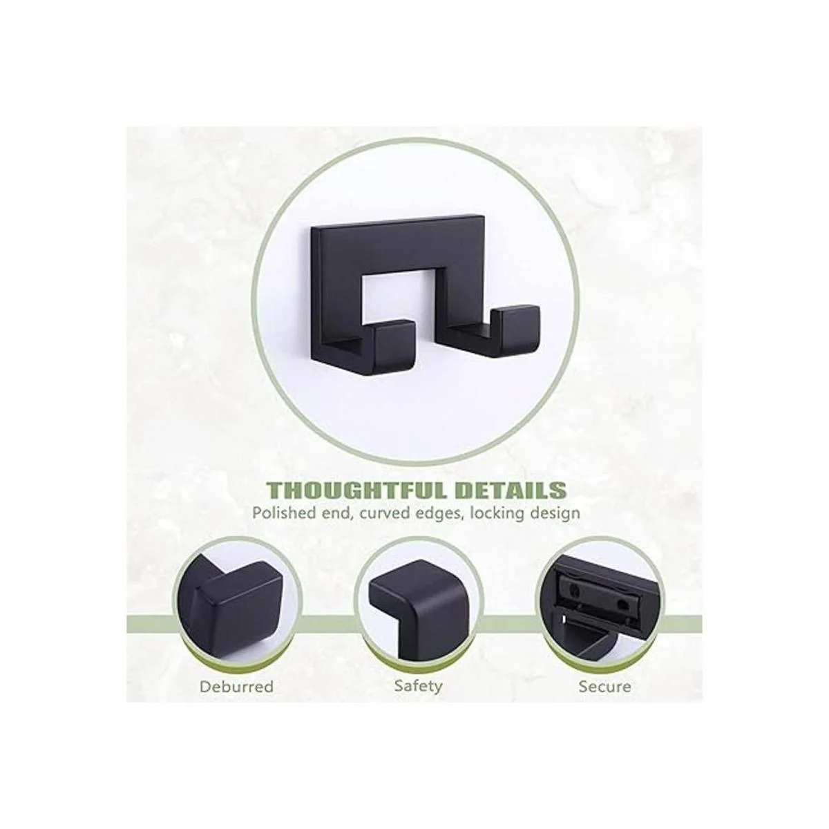 Gancho doble para toallas de baño, color negro mate, ángulo simple, soporte para toallas de baño, toallero de mano, percha para ropa, baño, cocina, doble gancho para pared