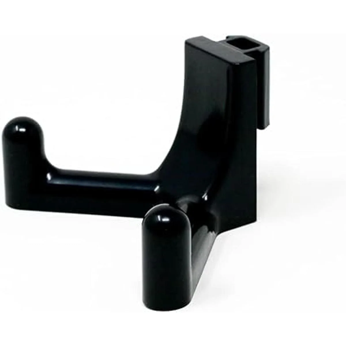 Ganchos de plástico negro para guardar cosas como rastrillos, palas, cortaúñas y más en tu cobertizo de por vida