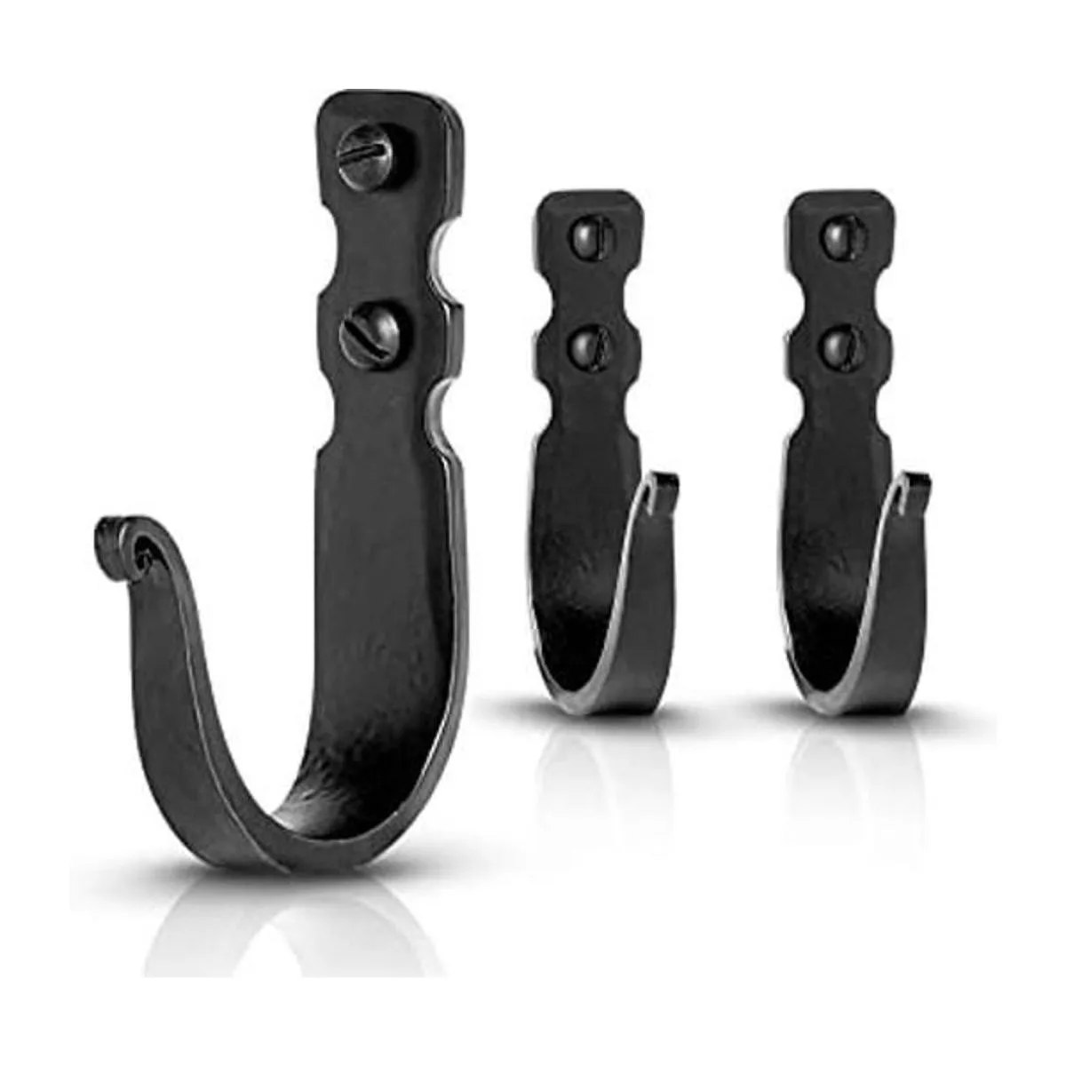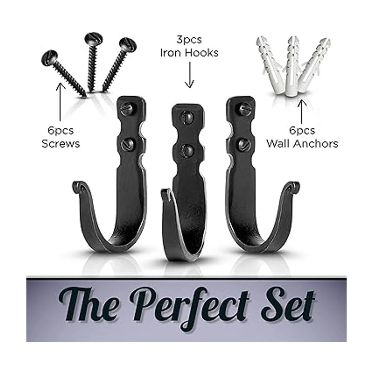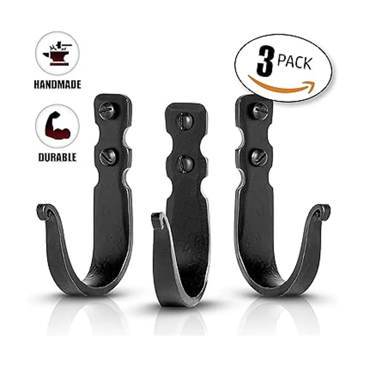 Gancho para montar en la pared, gancho decorativo de hierro forjado hecho a mano para baño y cocina, ganchos para colgar batas, toallas, abrigos, paños, bolsos, llaves y joyas 3, negro