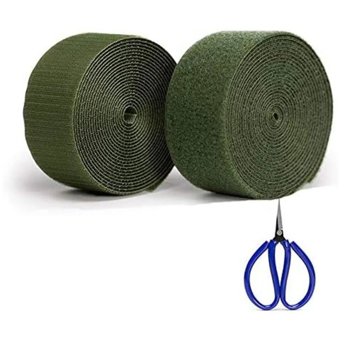 El paquete incluye 1 rollo de cinta de gancho y 1 rollo de cinta de bucle. Y un par de tijeras. 2 pulgadas de ancho y 13 pies de largo, color verde militar