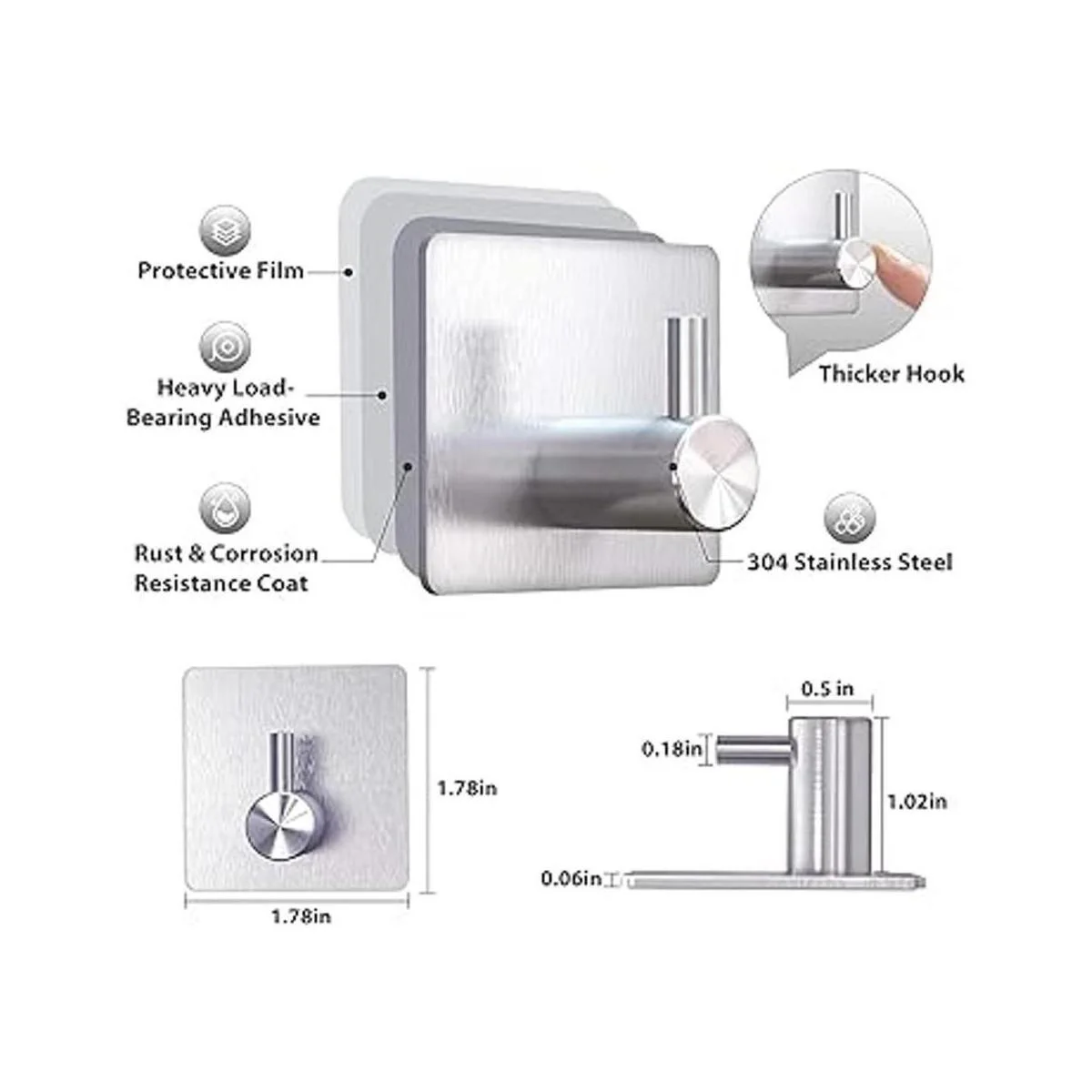 Ganchos adhesivos de pared resistentes impermeables de acero inoxidable para colgar abrigos, sombreros, toallas y toallas, soporte de pared, baño y dormitorio