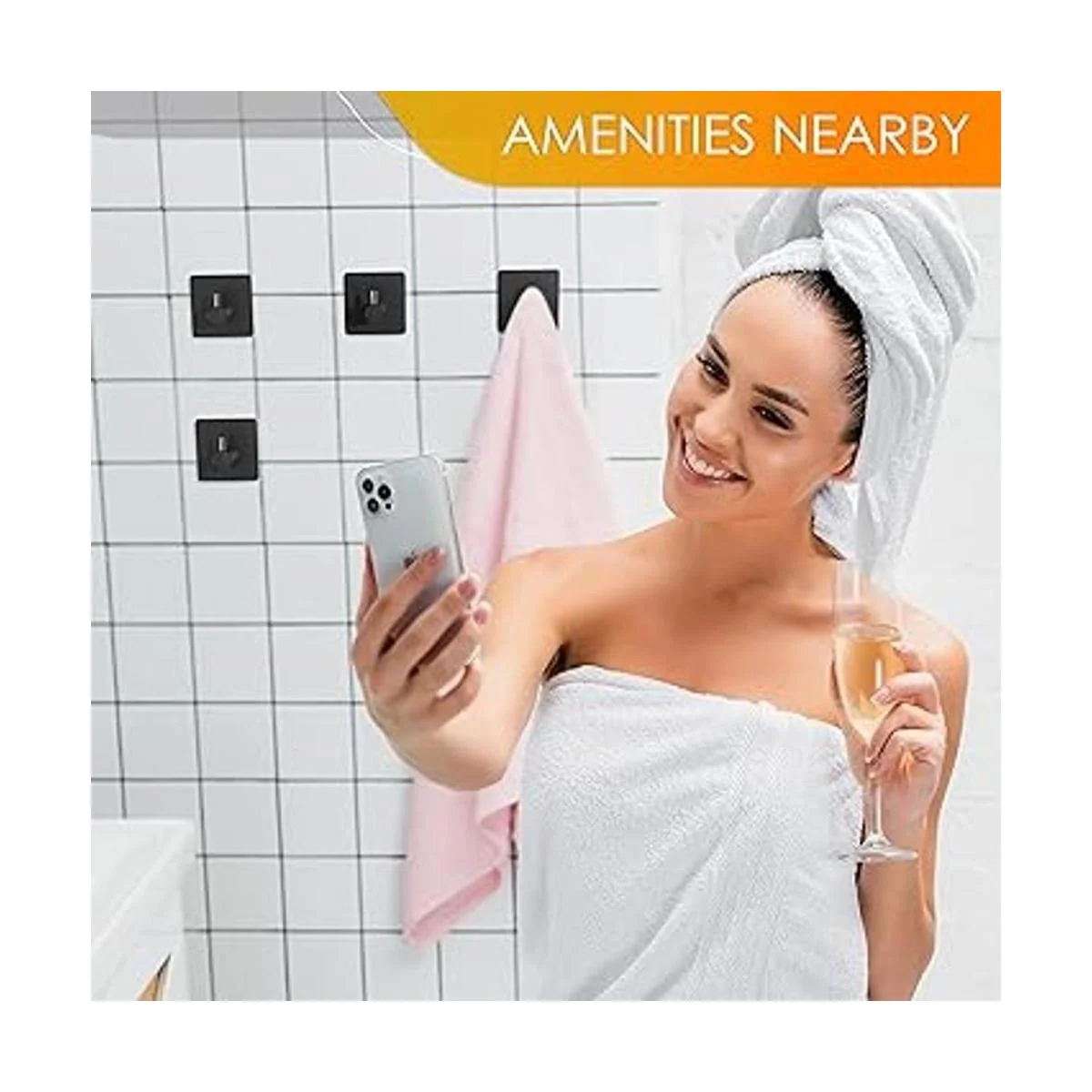 Gancho de pared resistente: estos ganchos para toallas están hechos de acero inoxidable sus304 de alto estándar, utilizando un adhesivo fuerte, con alta viscosidad y alta capacidad de carga, impermeable, anticorrosión y óxido. La capacidad máxima de carga de los ganchos de 9.8 ft es de 16 libras. Estos ganchos adhesivos no requieren taladrar y no dañan la pared.