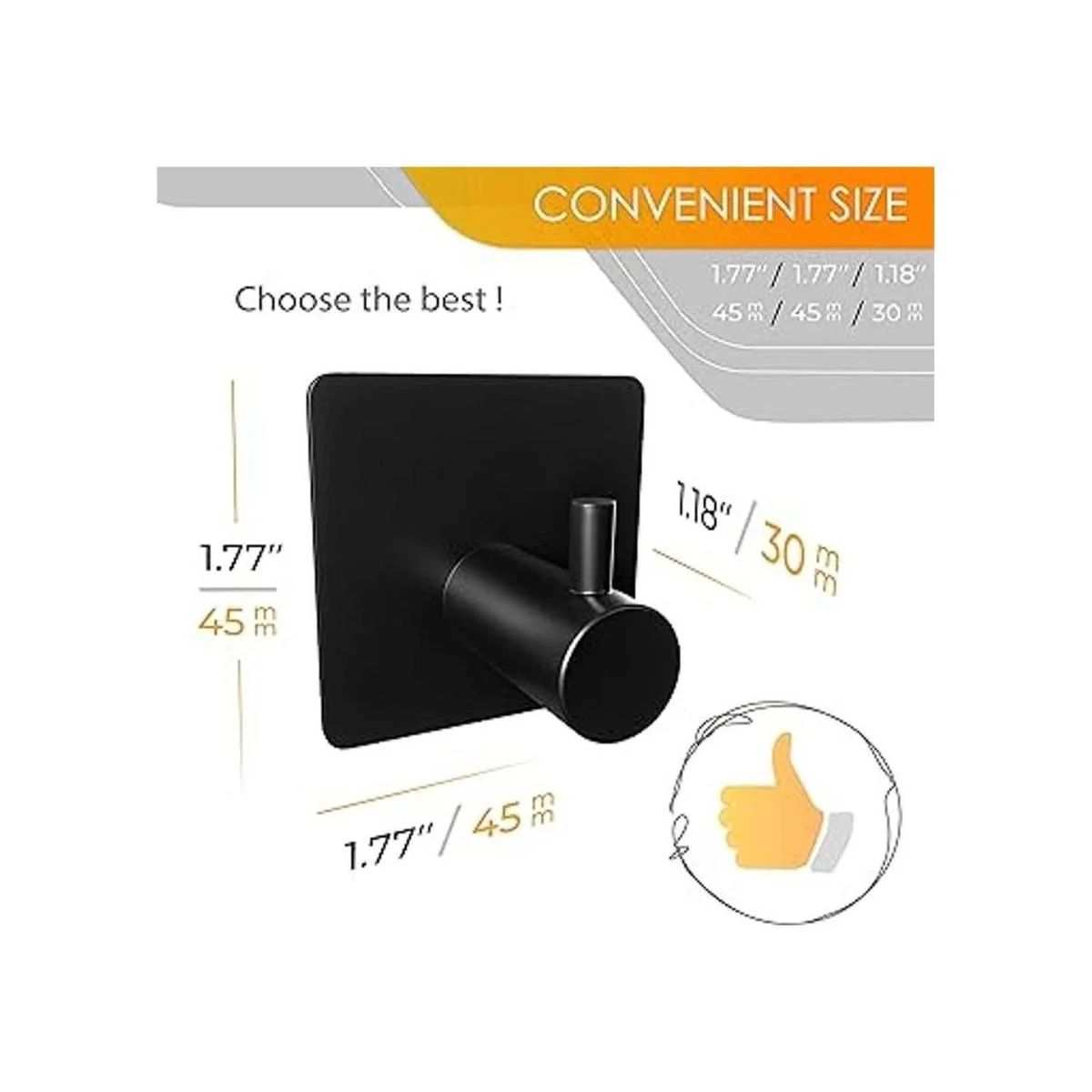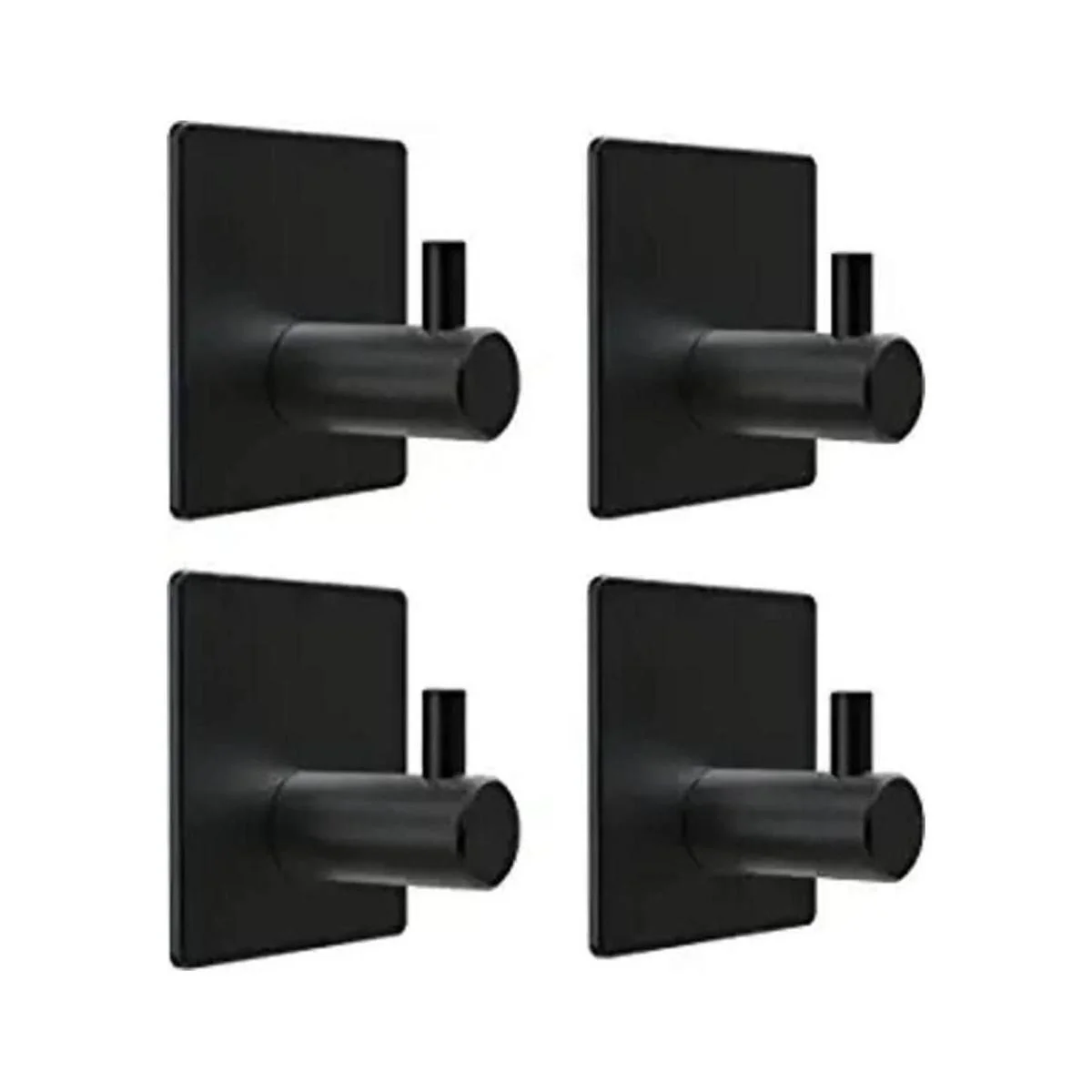 Ganchos adhesivos para toallas de pared para colgar Acero inoxidable SUS304 negro mate impermeable con cintas adhesivas fuertes Ganchos 3M para baño, dormitorio, cocina, armario, paquete de 4