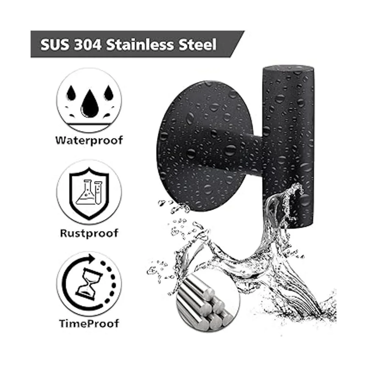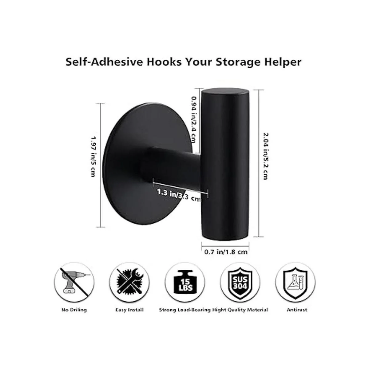 Ganchos adhesivos Yandls Ganchos de pared resistentes al agua, ganchos de ducha impermeables de acero inoxidable, soportes adhesivos para colgar, ganchos de toalla montados en la pared para baño y cocina, paquete de 2, negro, YSBH002