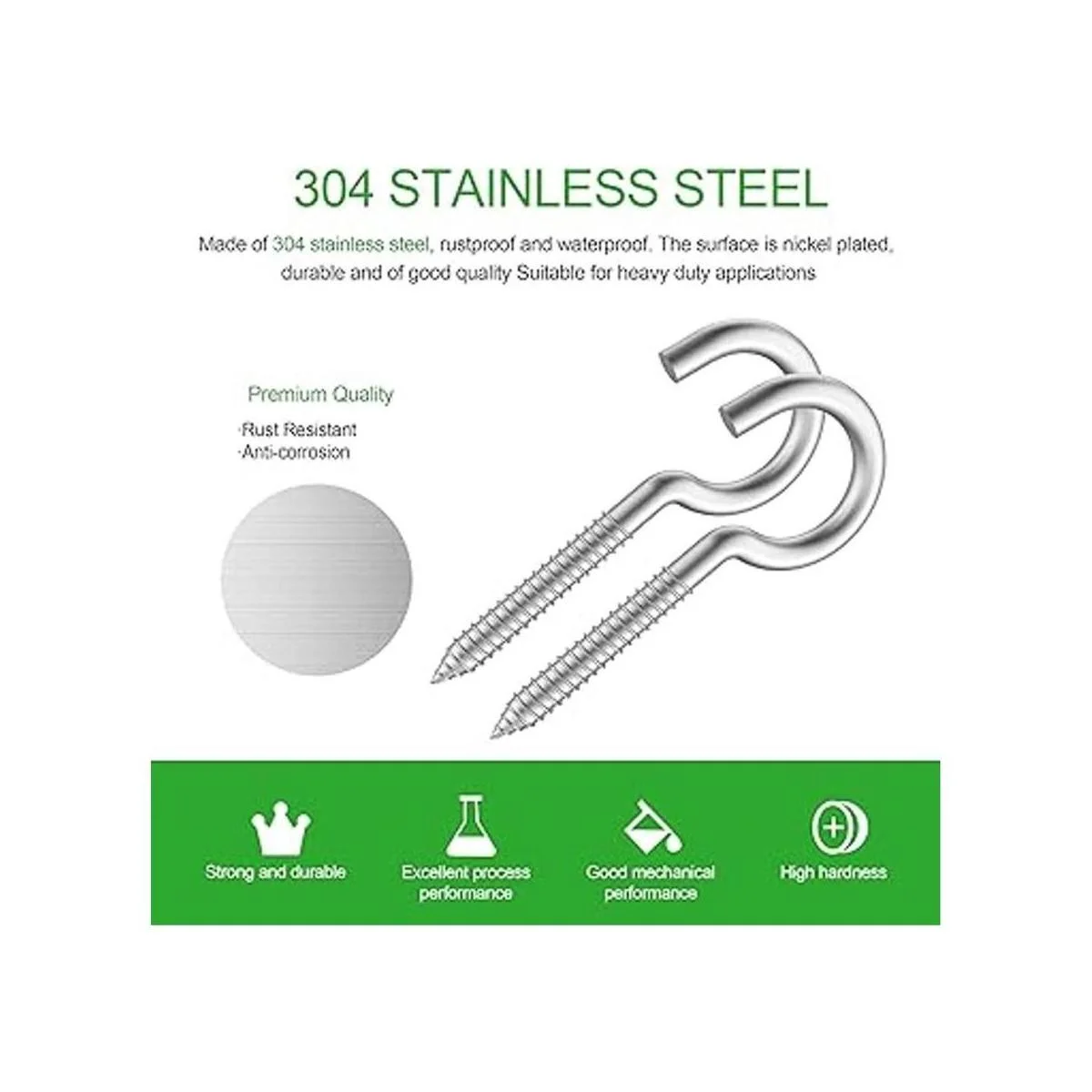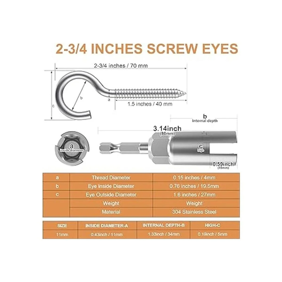 Ganchos de acero inoxidable 304, ganchos de metal, ganchos de ojo de tornillo de servicio pesado, ganchos de ojo de anillo de terminal de madera, soportes de hamaca, gancho de iluminación de Navidad. 26 piezas 1 destornillador de tuerca hexagonal de 14 pulg.