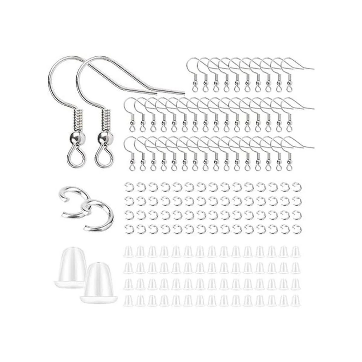 Kit de gran valor: 200 ganchos de acero inoxidable, 200 anillos de salto de acero inoxidable y 200 cierres de silicona transparente.