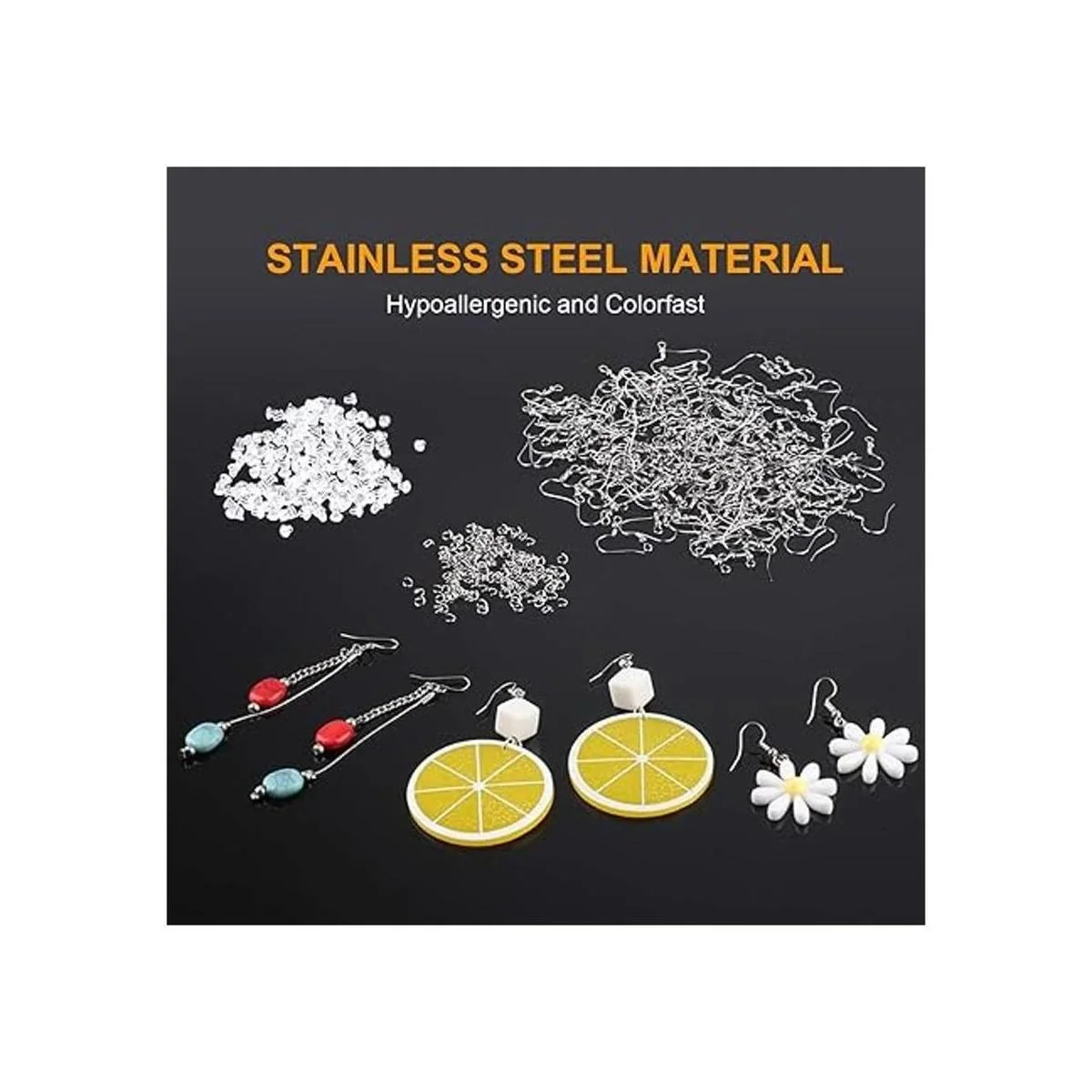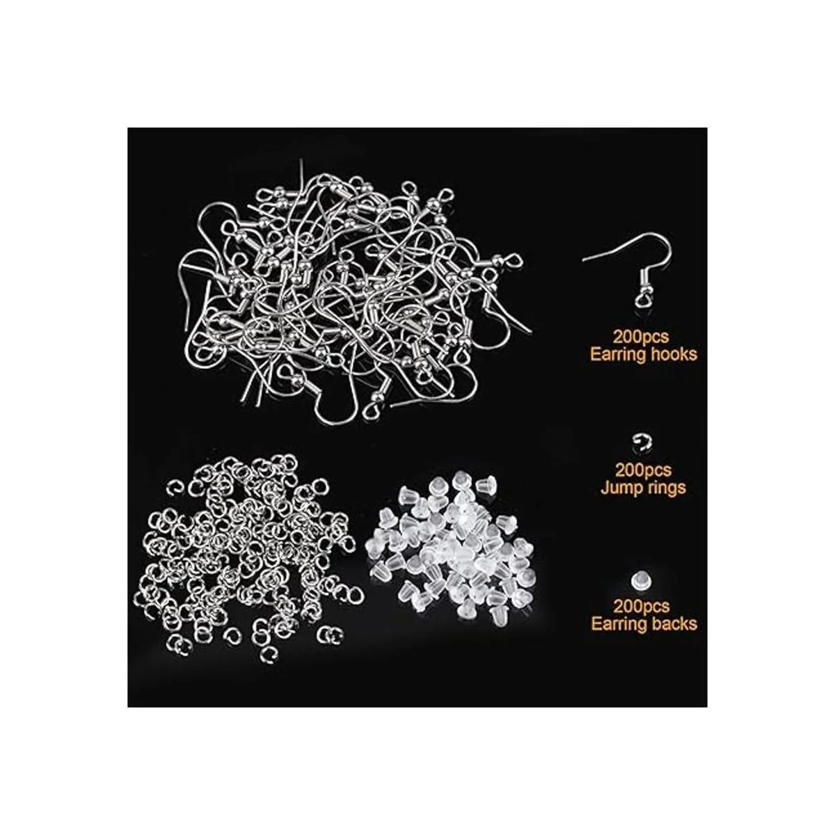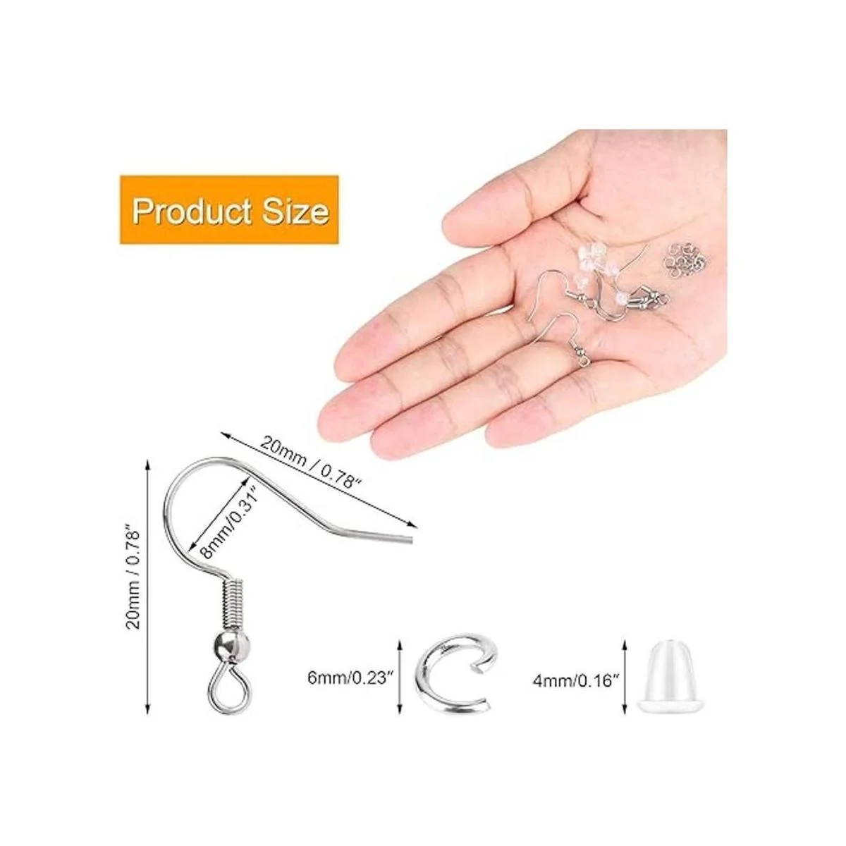 Ganchos de acero inoxidable para pendientes de alambre francés, 600 piezas para hacer aretes, piezas de joyería, kits de suministros de bricolaje, con tapones de silicona para pendientes y anillo de salto abierto