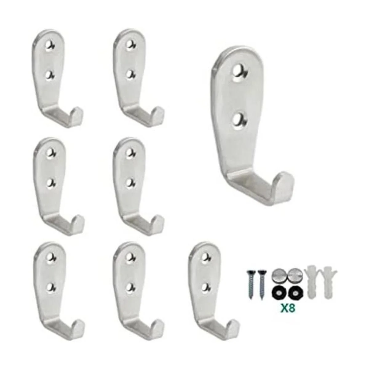 Ganchos de acero inoxidable ULIFESTAR, resistentes ganchos de metal para colgar toallas, llaves, sombreros, cocina, baño, ganchos para colgar en la pared, ganchos para interiores y exteriores, con tornillos de instalación, 8 unidades