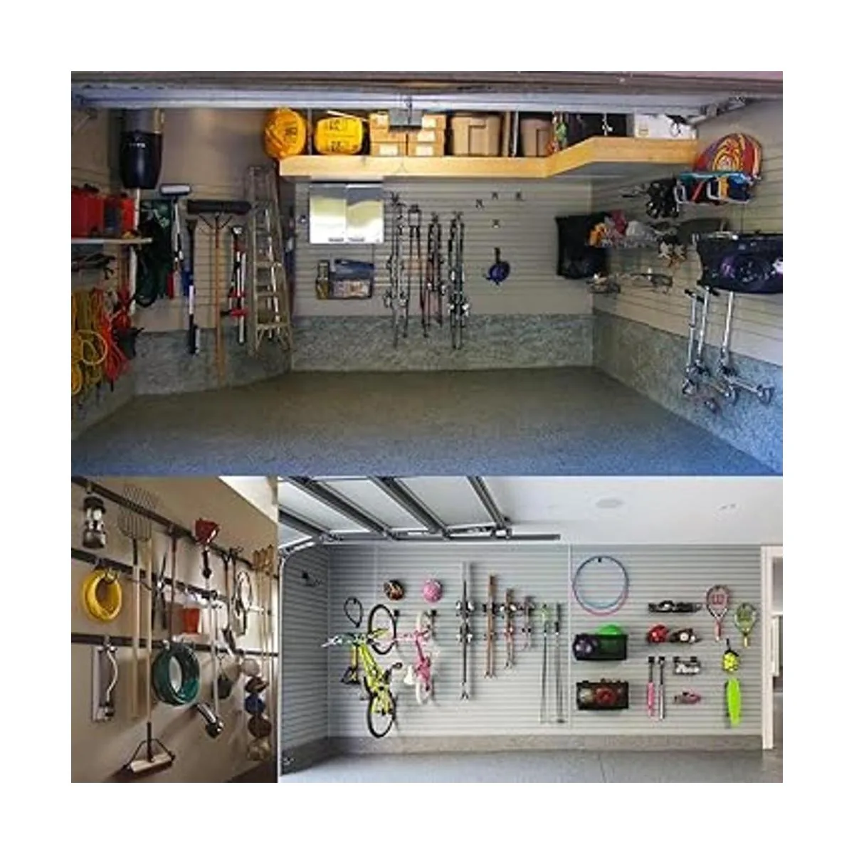 Varias aplicaciones: ganchos de organizador de garaje de alta resistencia utilizados para garaje, tienda, sótano, cobertizo, cocina, baño, se puede montar en la madera dura, paredes con tachuelas, bloque y ladrillo. Cuarto de servicio para un almacenamiento eficiente.