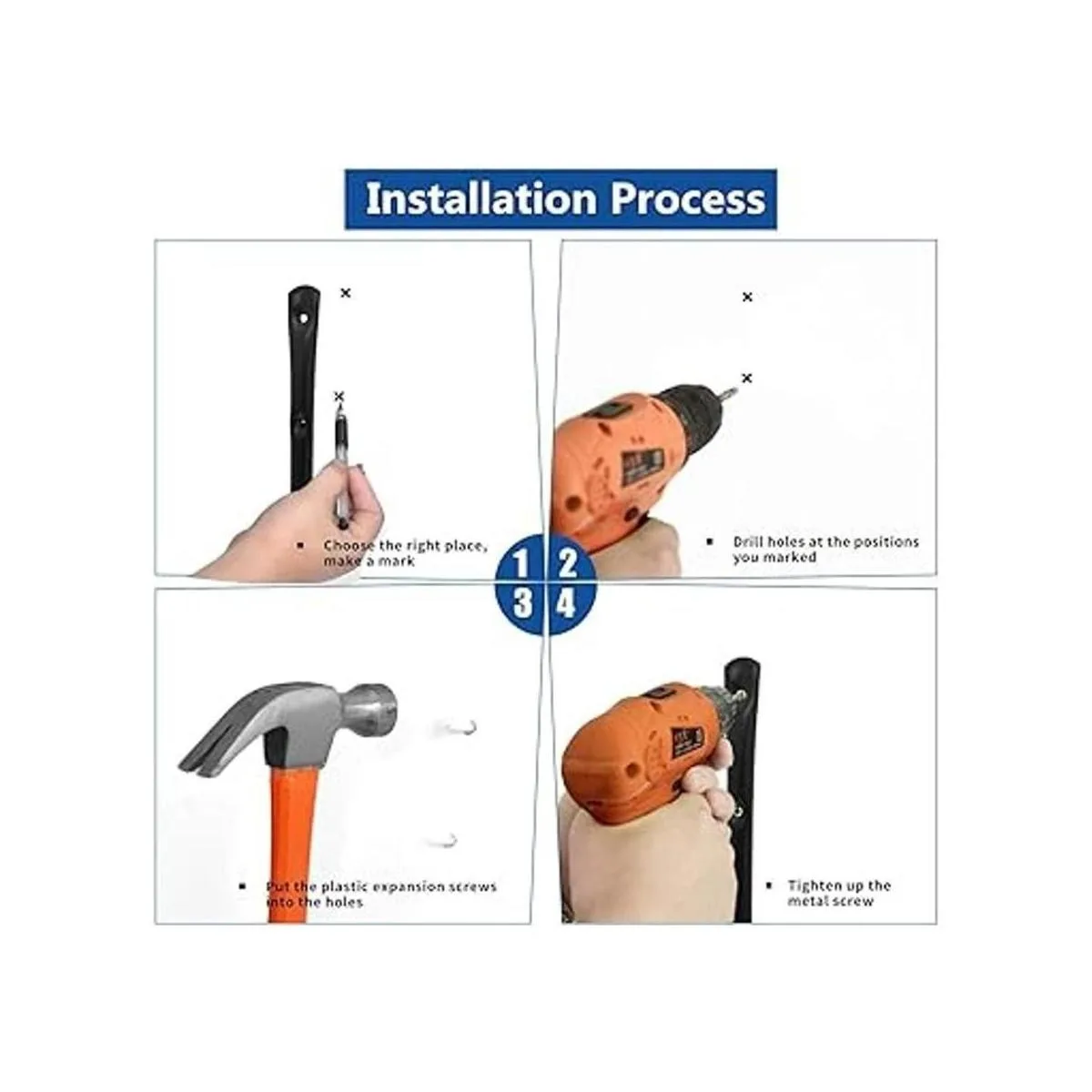 Fácil de instalar: haz un pequeño marcador de lápiz donde el centro del tornillo vaya y taladra un agujero en el punto o puntos que marcas. Asegúrese de que el agujero que perfora es más profundo que la longitud del anclaje.A continuación, inserte los anclajes de paneles de yeso en el agujero.Por último, atornille el tornillo mediante el uso de un destornillador.