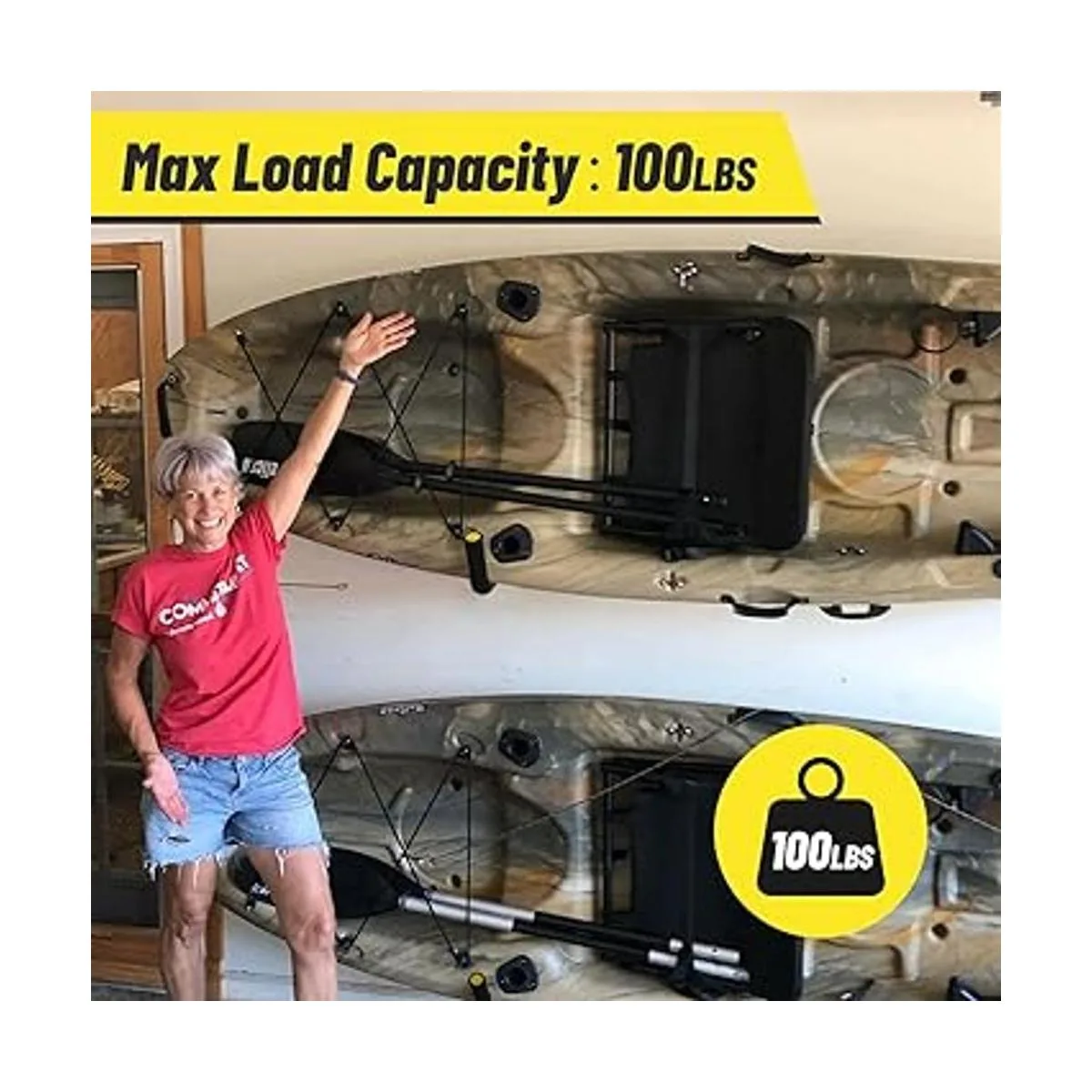 Utilidad, bien organizado: ideal para la organización de almacenamiento de garaje como estante de almacenamiento de kayak, soporte de tabla de remo en la pared, estante de snowboard y soportes de pared para tabla de surf, gancho resistente para canoa, sillas plegables, escaleras, mangueras de jardín, herramientas, bicicleta, equipo deportivo y otros artículos voluminosos. Organízalos y protégelos de daños o desorden