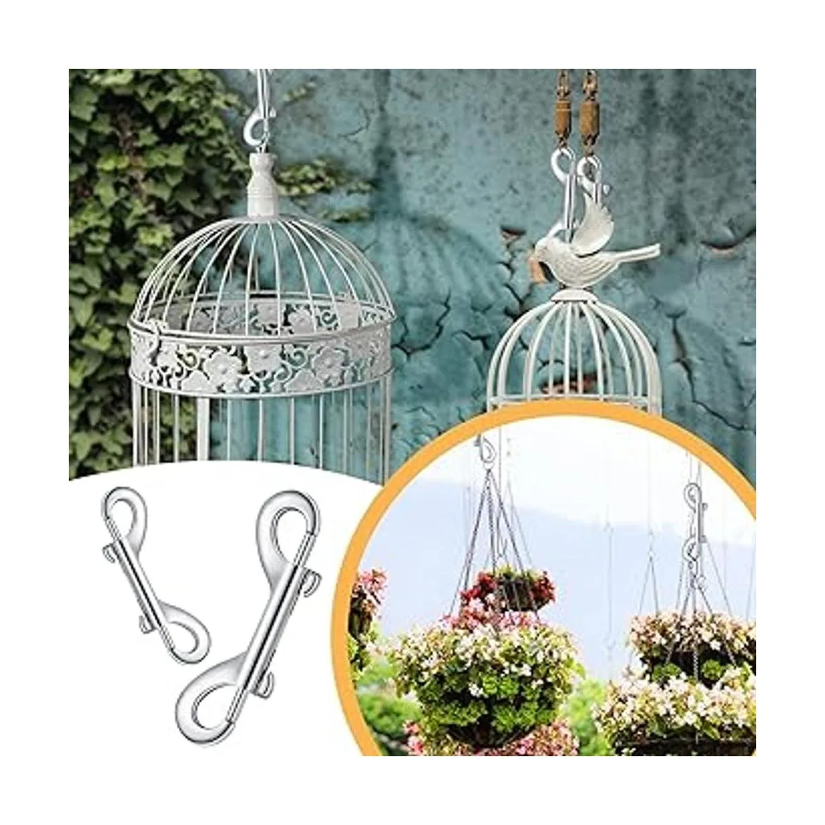 Material fiable: el gancho de doble extremo está hecho de material de aleación de zinc de calidad, resistente y no es fácil de romper, también no se oxida fácilmente, sería agradable simplemente hacer llaveros con o utilizarlos para una conexión de correa a cuello