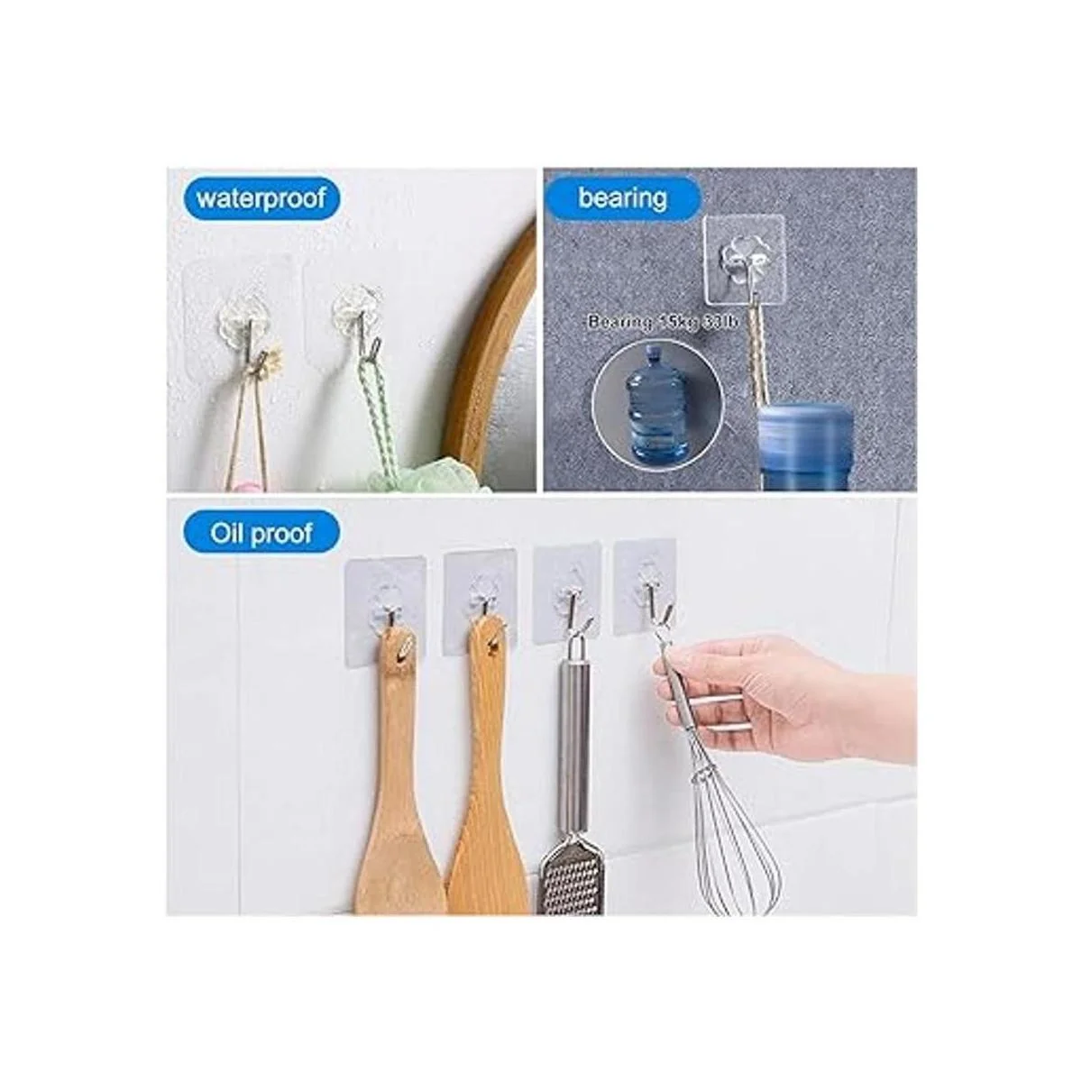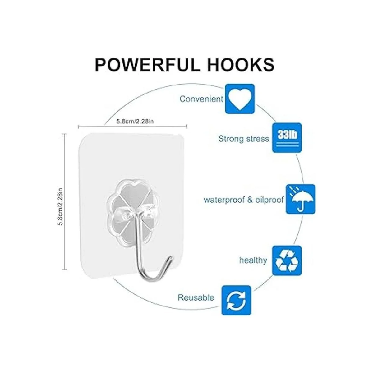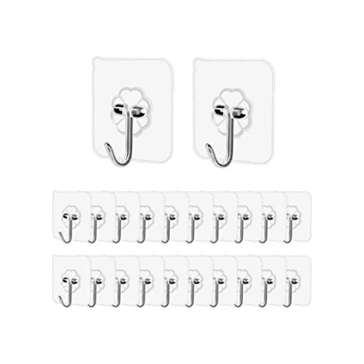 Ganchos de pared de 33 libras máx.33.1 lbs, ganchos autoadhesivos resistentes, impermeables y resistentes al aceite, ganchos transparentes reutilizables sin costuras, resistentes para baño, cocina, paquete de 20