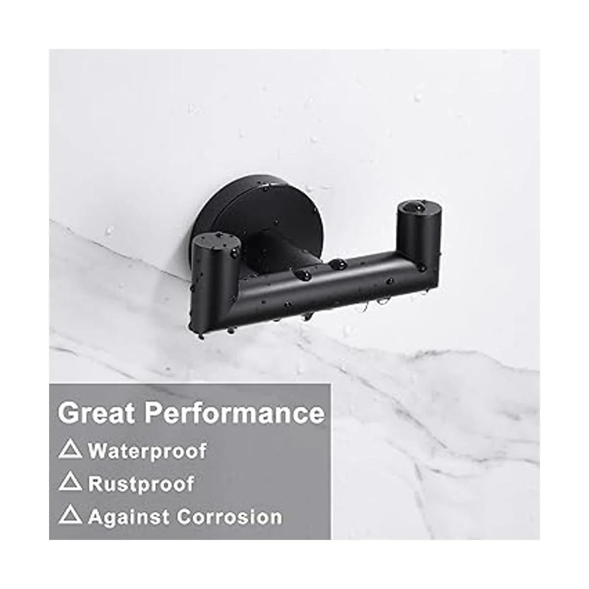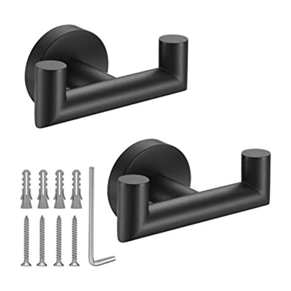 Ganchos de toalla para baño, gancho de toalla negro mate para cocina y baño, gancho de acero inoxidable SUS304, ganchos dobles resistentes para colgar toallas, abrigos, esponjas, ropa, montaje en pared, paquete de 2