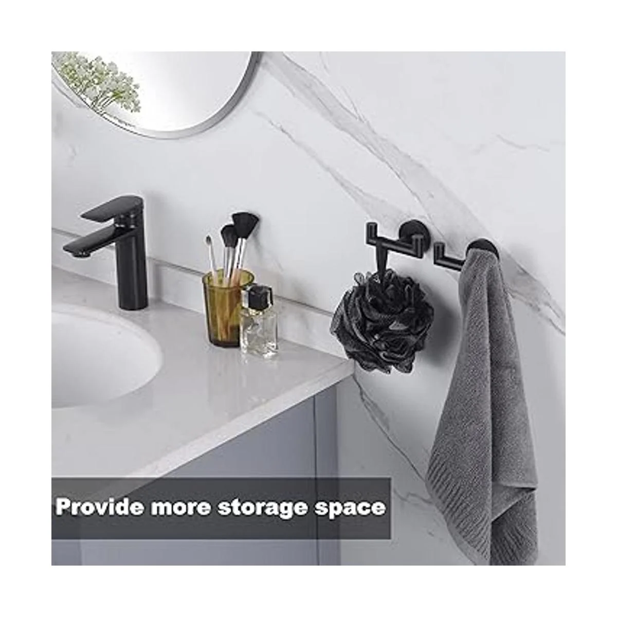 Diseño resistente y de doble gancho: los ganchos de baño montados en la pared para toallas se pueden conectar firmemente y tienen una capacidad de carga más fuerte. Estos ganchos para abrigos para pared pueden colgar abrigos, toallas de baño, bolsas y otros artículos. El gancho doble para bata para baños ahorra espacio y proporciona más espacio de almacenamiento, que son una alternativa práctica a los ganchos individuales o voluminosos toalleros.