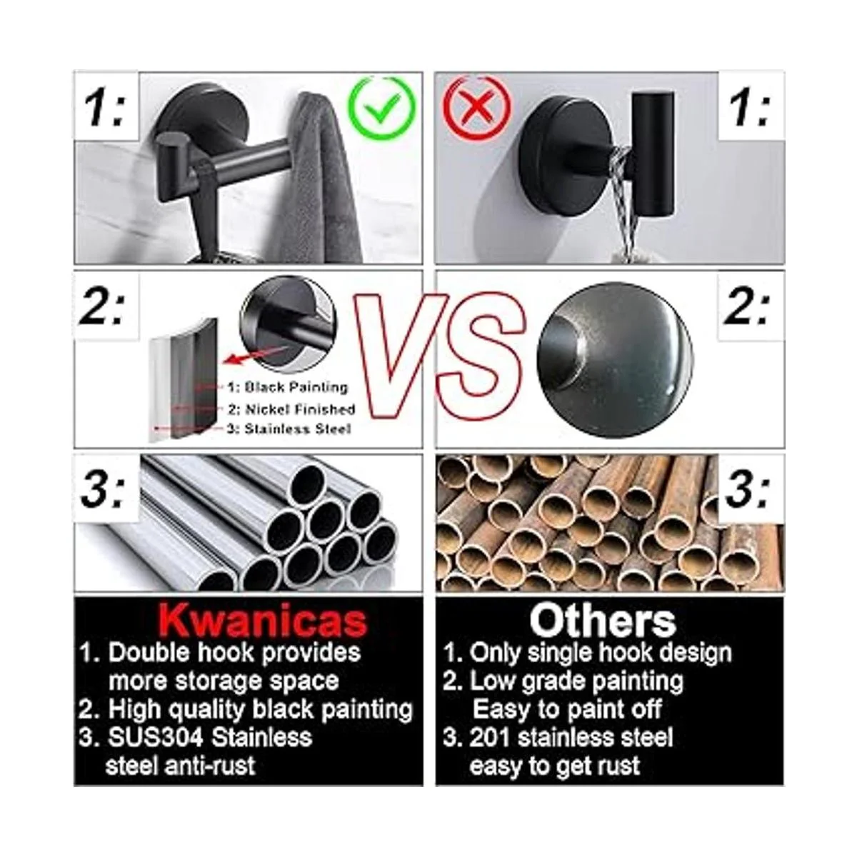 Muy fácil de instalar: los ganchos de toalla negros mate son muy fáciles de instalar y vienen con todos los accesorios de tornillo de hardware. Con una guía de instalación detallada, el gancho para toallas de baño es lo suficientemente fácil como para ser instalado por ti mismo sin instalador profesional. Todos los accesorios incluidos, así como una instrucción para consultar. El trabajo se puede hacer en pocos minutos. Los tornillos están ocultos y muy adecuados para el baño.