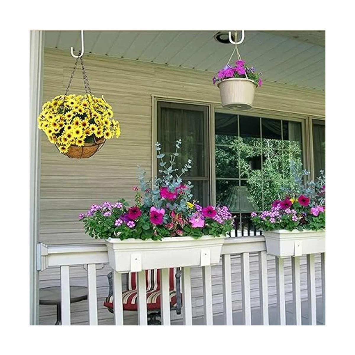 Ganchos de vinilo para valla de 2 x 6 pulgadas, ganchos de luz de patio, paquete de 4 ganchos de valla de acero con revestimiento de polvo blanco para plantas colgantes, macetas, comederos de pájaros, luces DINGEE