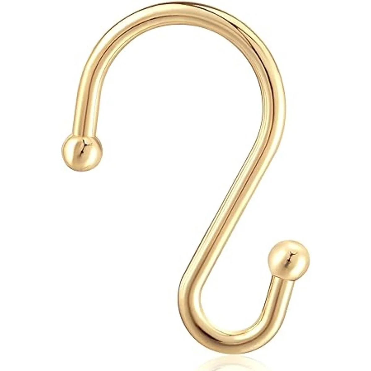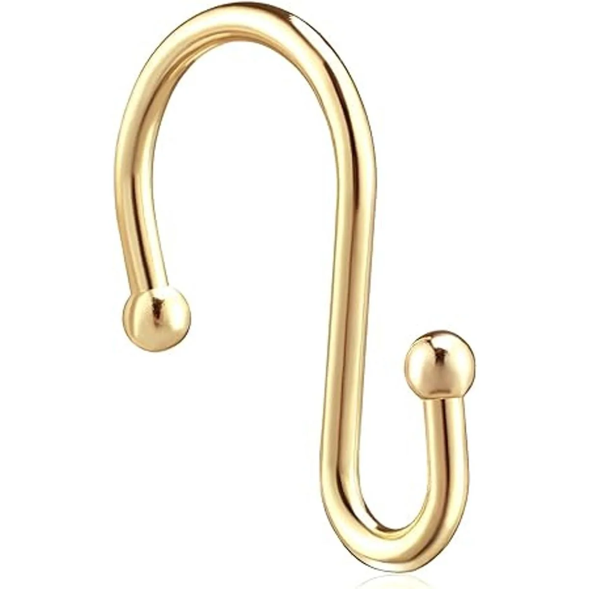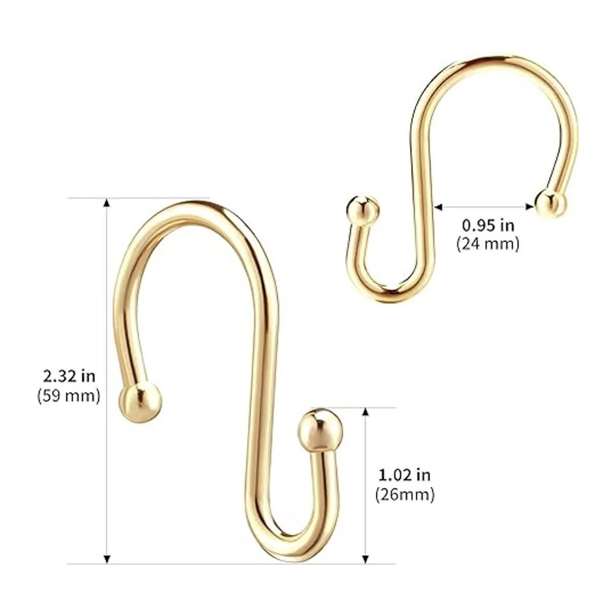 Simple y hermoso: ganchos de ducha chapados en oro, adecuados para la mayoría de colores y estilos para barras de cortinas de ducha. Ganchos decorativos en forma de S que añaden un aspecto muy clásico a tu baño, la bola final está diseñada para permanecer en la barra y no se cae.