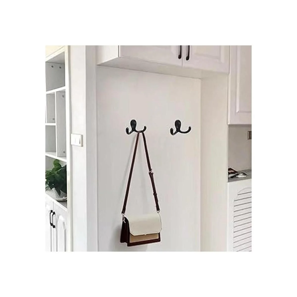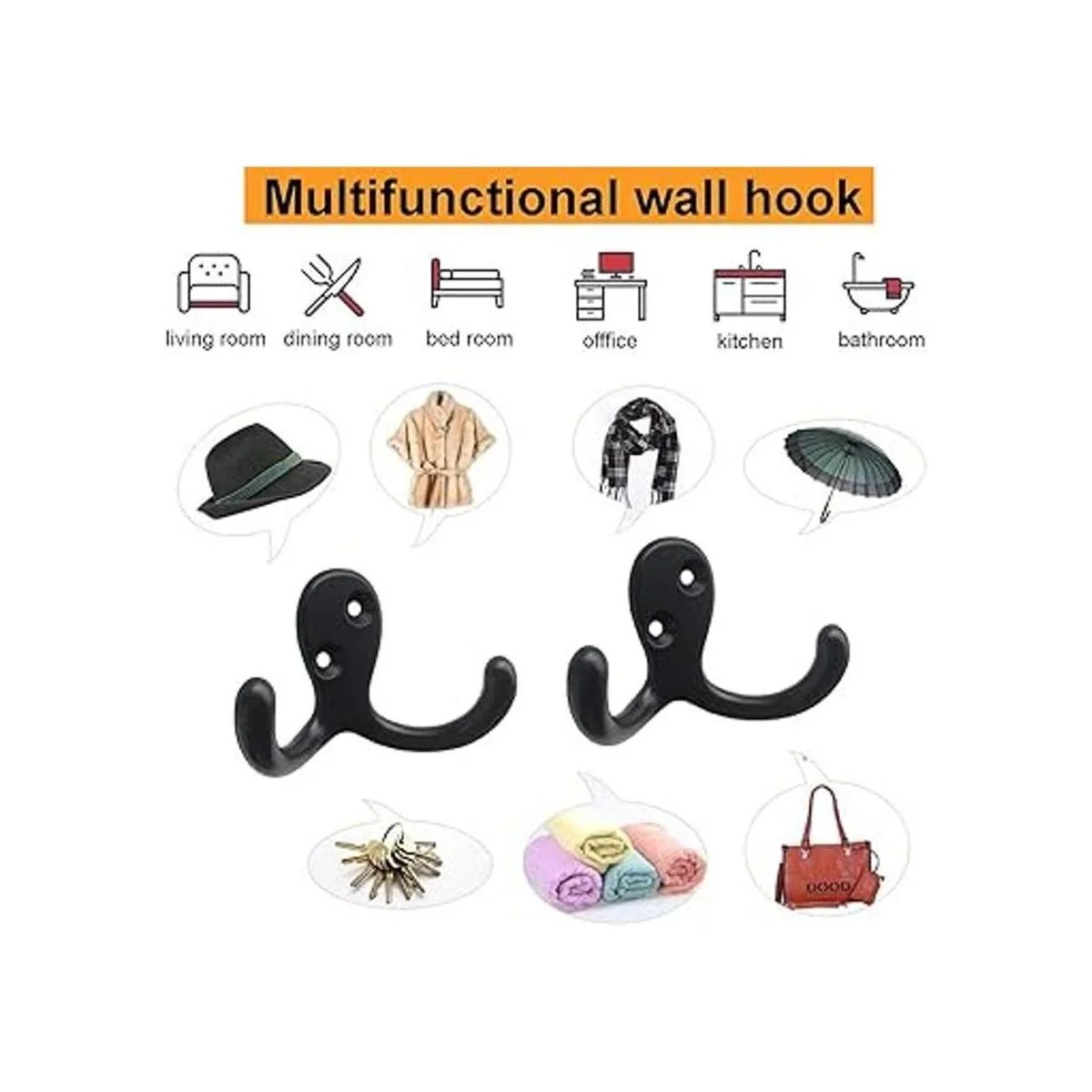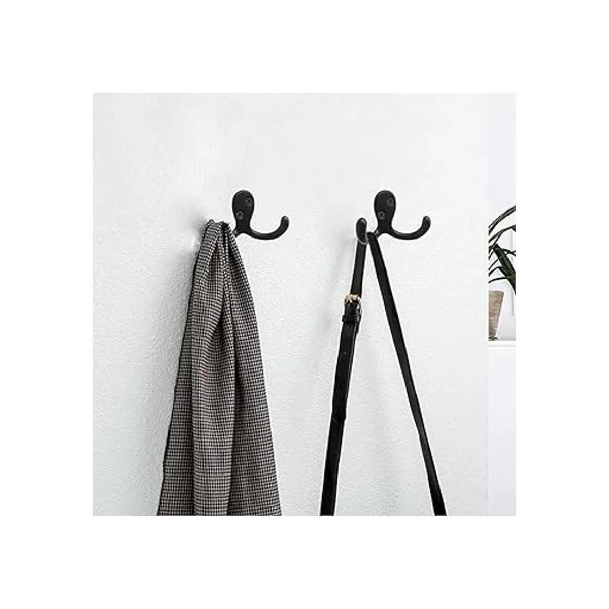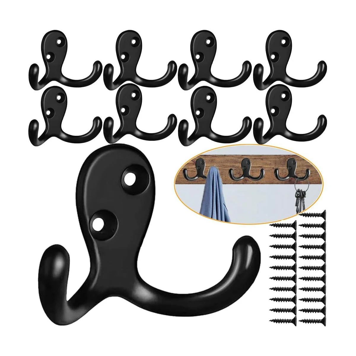 Ganchos para abrigo, 10 ganchos de pared resistentes para colgar abrigos que no se oxidan, ganchos dobles para bata, montados en la pared para llaves, toallas, bolsas, tazas, sombrero negro
