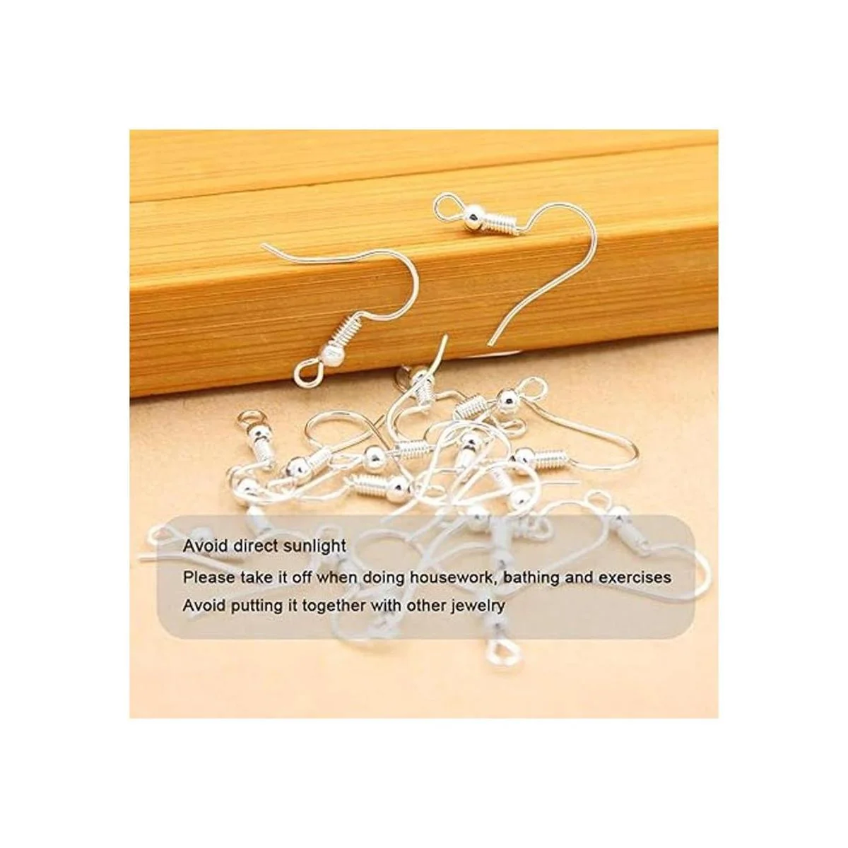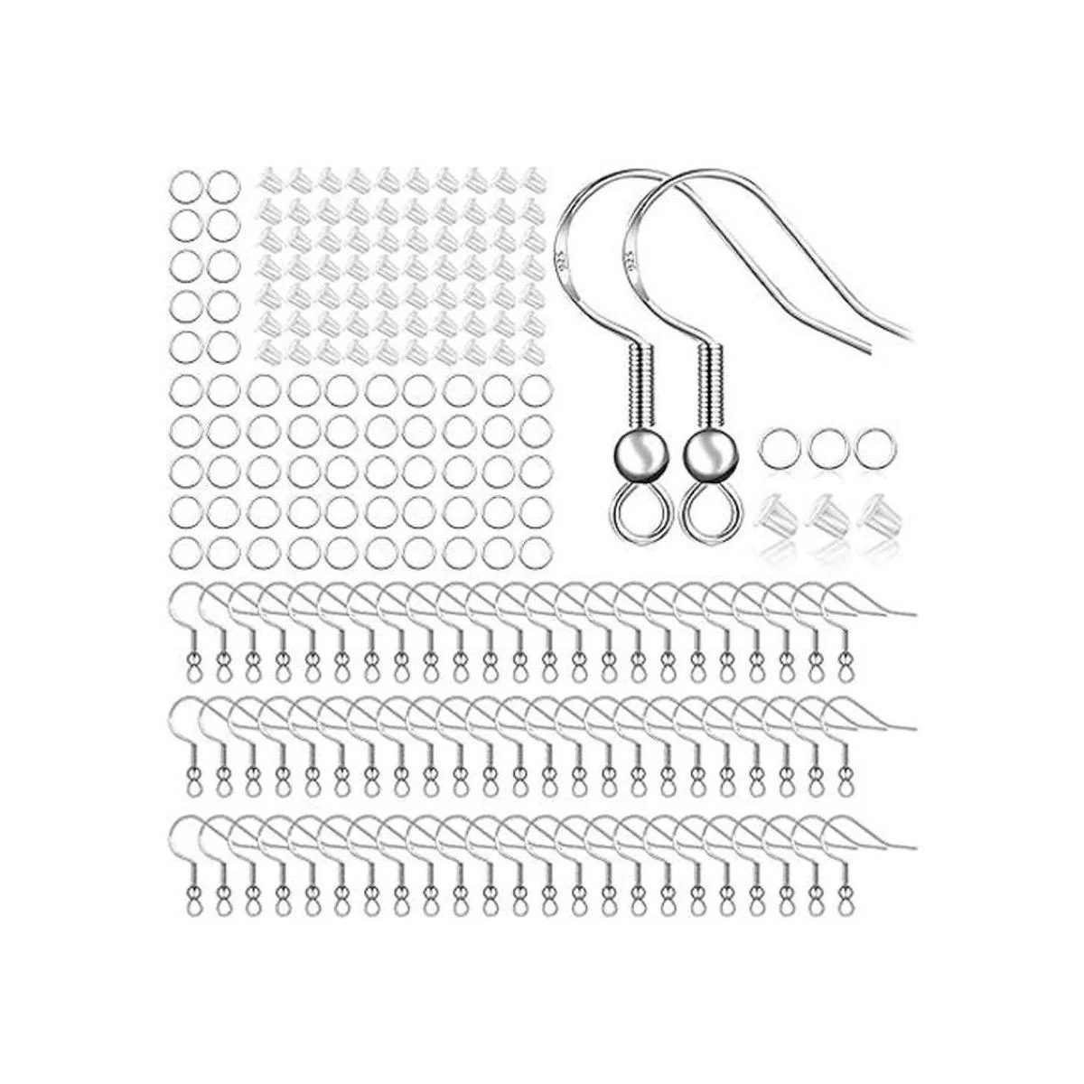 Ganchos para aretes de plata de ley 925, 150 piezas75 pares, cables para orejas, ganchos para peces, kit de fabricación de aretes hipoalergénicos con anillos para saltar y tapones de silicona transparente para pendientes plateado