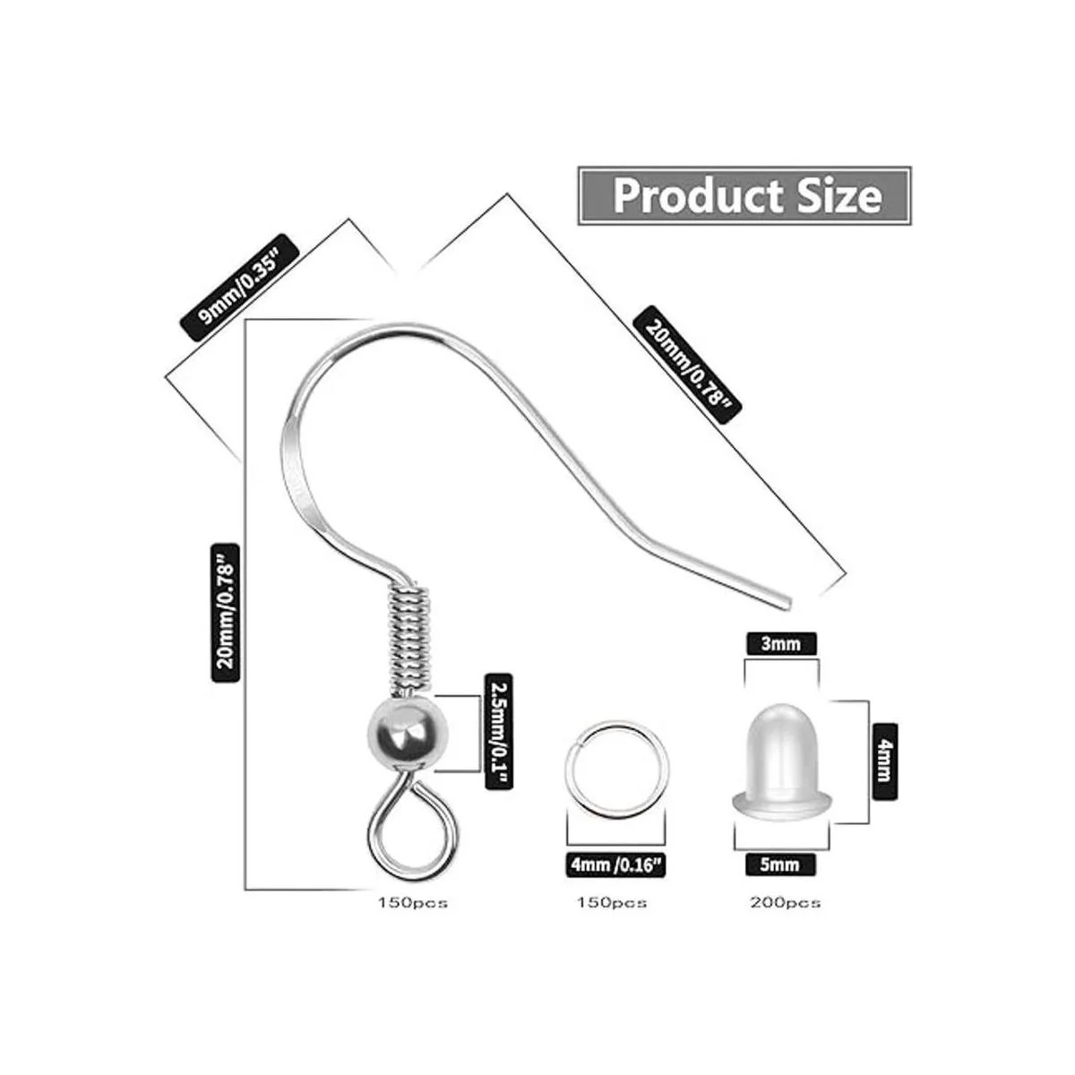 Combinación de 500 piezas: 150 unidades/75 pares de aretes de anzuelo para hacer joyas con 200 respaldos de aretes de 0.197 in, así como 150 anillos de salto de 0.157 in, suficiente para tu repuesto y reemplazo, mantiene un uso prolongado.