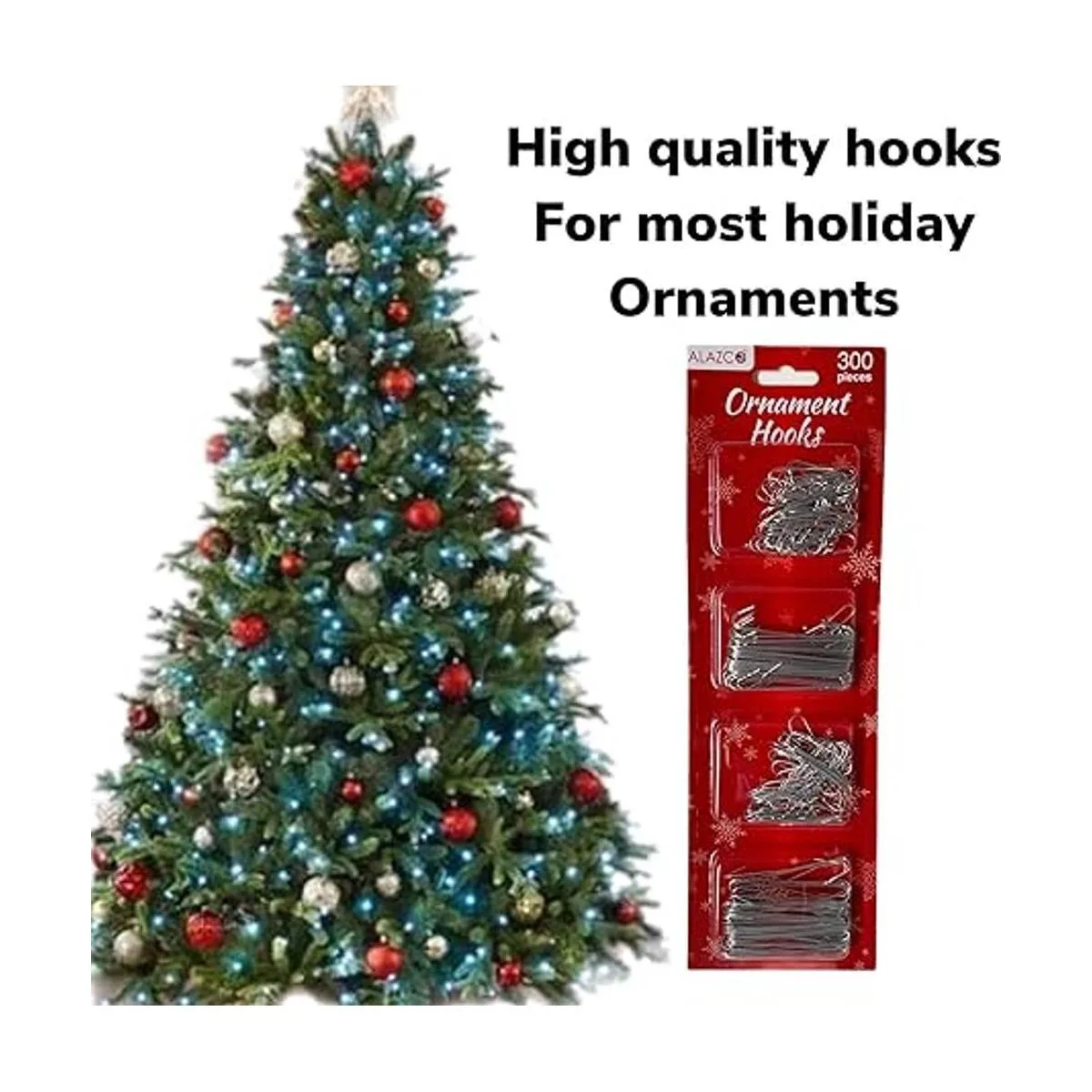300 ganchos plateados para colgar adornos de Alazco