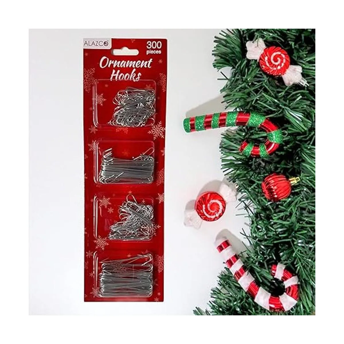 Ganchos para colgar adornos navideños y decoraciones de árbol, guirnaldas y coronas plata 300