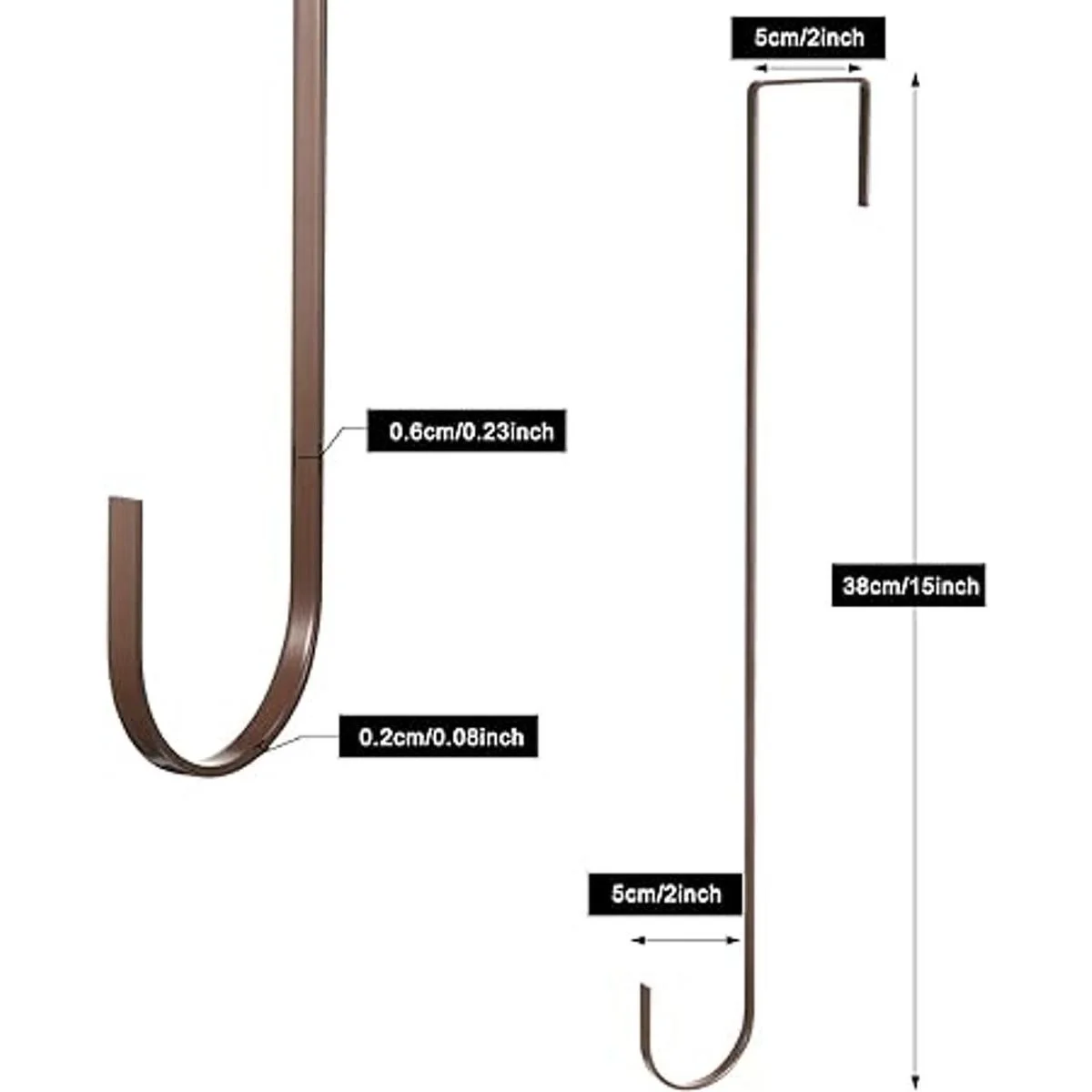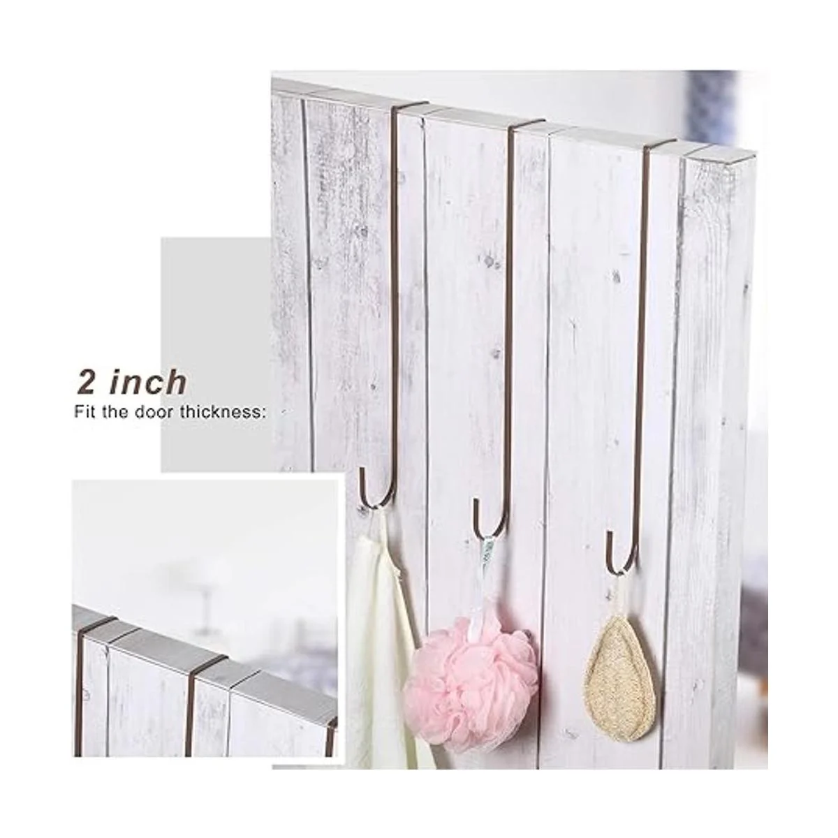 Tamaño adecuado: el grosor de los ganchos es de aproximadamente 0.08 pulgadas, el ancho es de aproximadamente 0.25 pulgadas, la longitud es de aproximadamente 15 pulgadas, el ancho del espacio de los ganchos en ambos lados es de aproximadamente 2 pulgadas. Los ganchos solo se pueden aplicar para las puertas cuyo grosor es de entre 1.5 y 2 pulgadas. Tamaño general para usar, buen rendimiento de carga, cuelga fácilmente tu corona, ropa, manualidades y más, fácil de deslizar