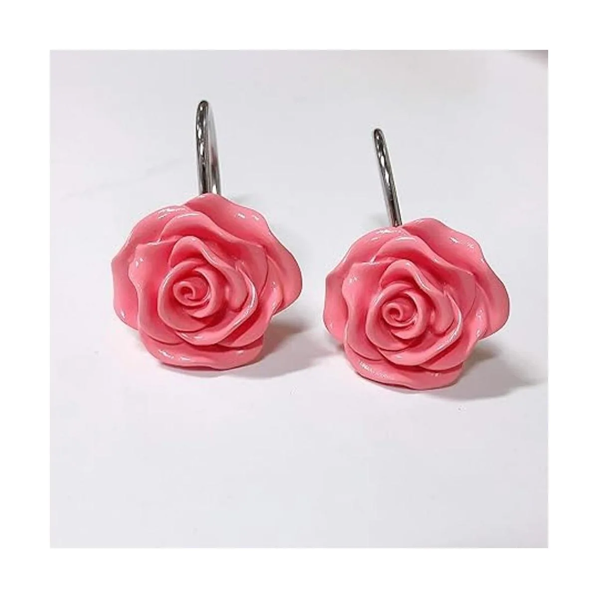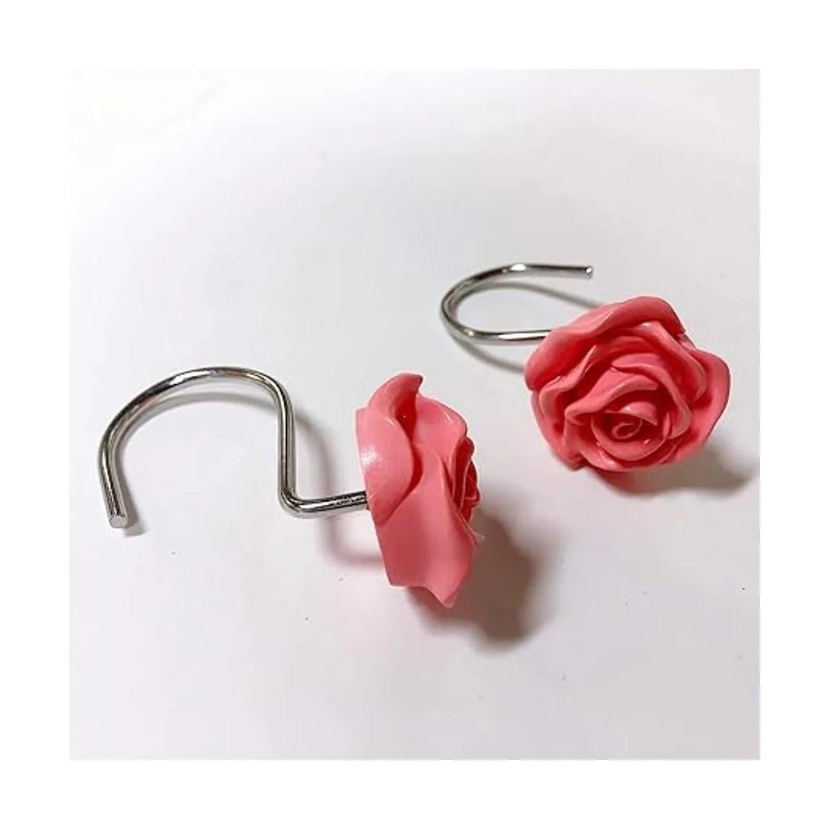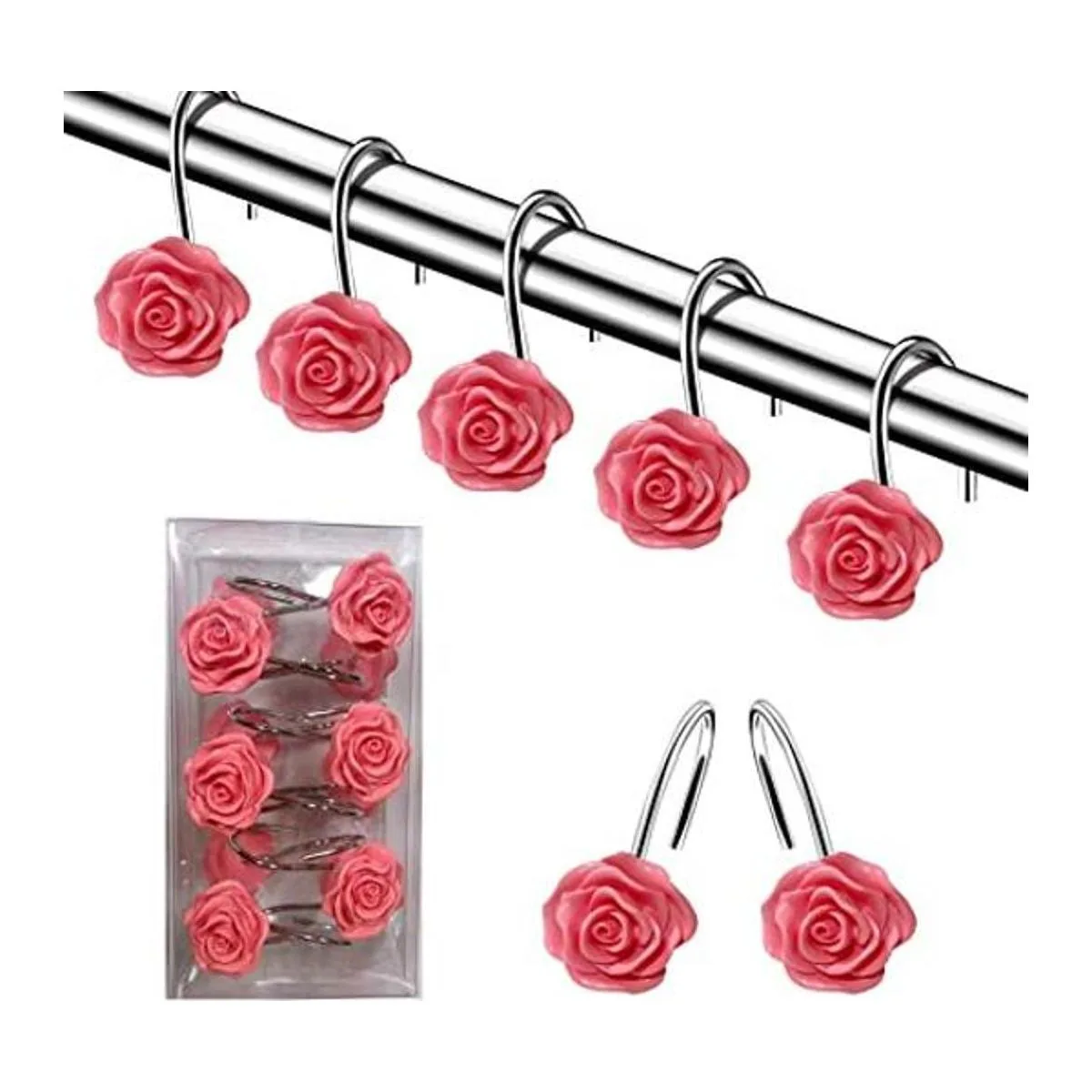 DLD 12 anillos de ducha 12 ganchos de ducha de acero inoxidable en forma de rosa están incluidos en el paquete. Tamaño: 1.2 x 1.4 x 2.4 in.