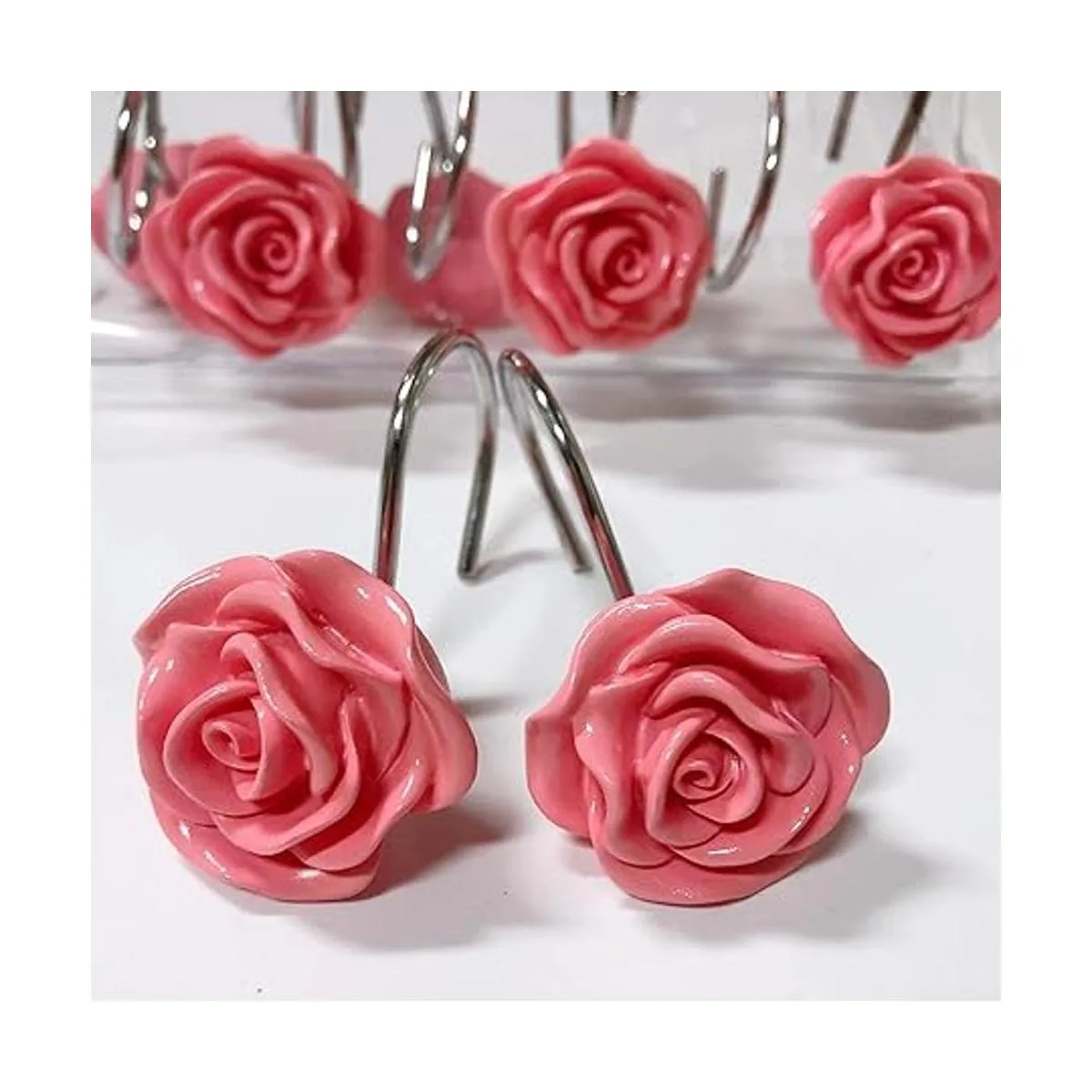 Ganchos para cortina de ducha DLD 12 ganchos decorativos de resina antioxidantes 5 colores disponibles para cuarto de baño, habitación de bebé, dormitorio, sala de estar rosa