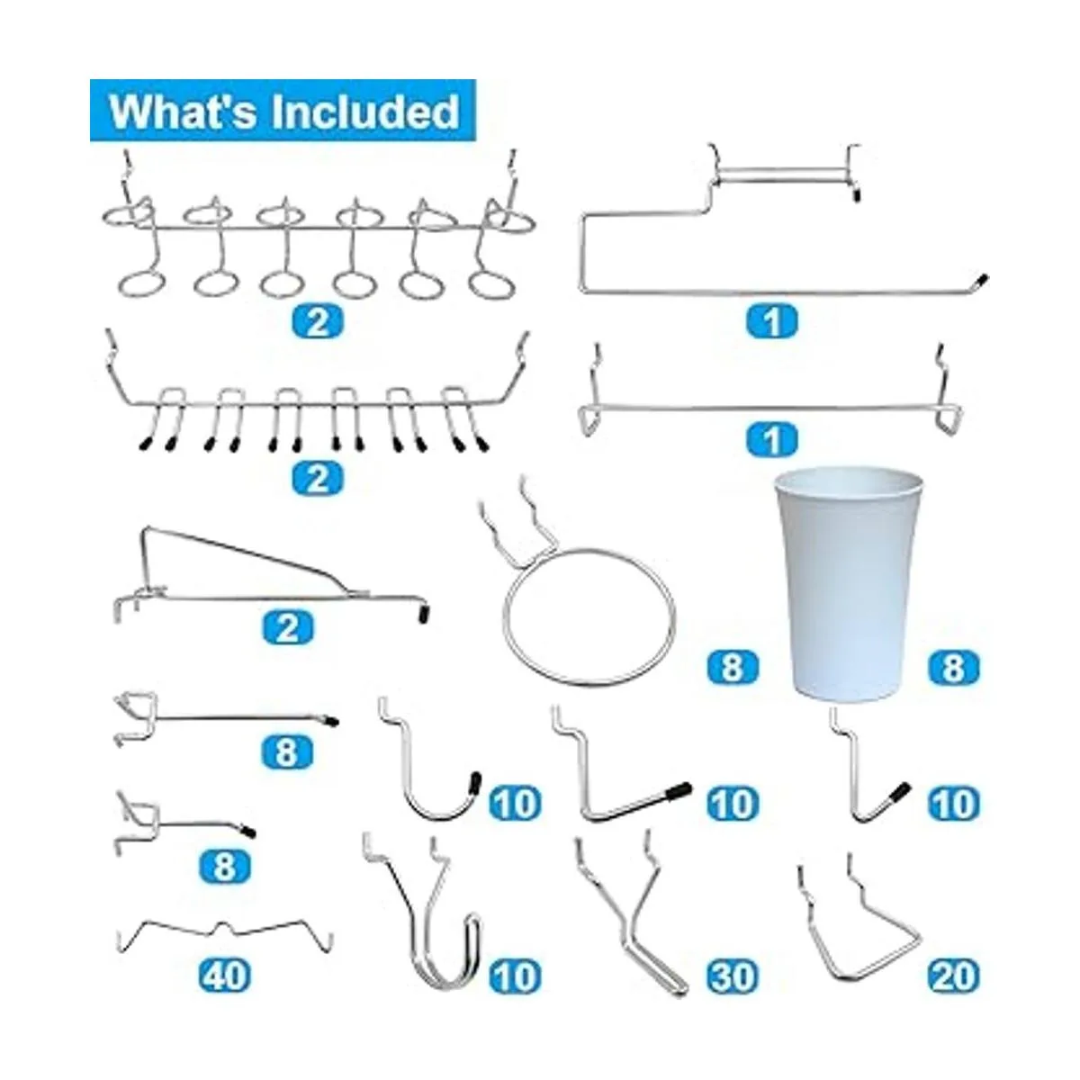 Ganchos para tablero de clavijas, no se caen, para garaje, banco de trabajo, cocina, 170 piezas